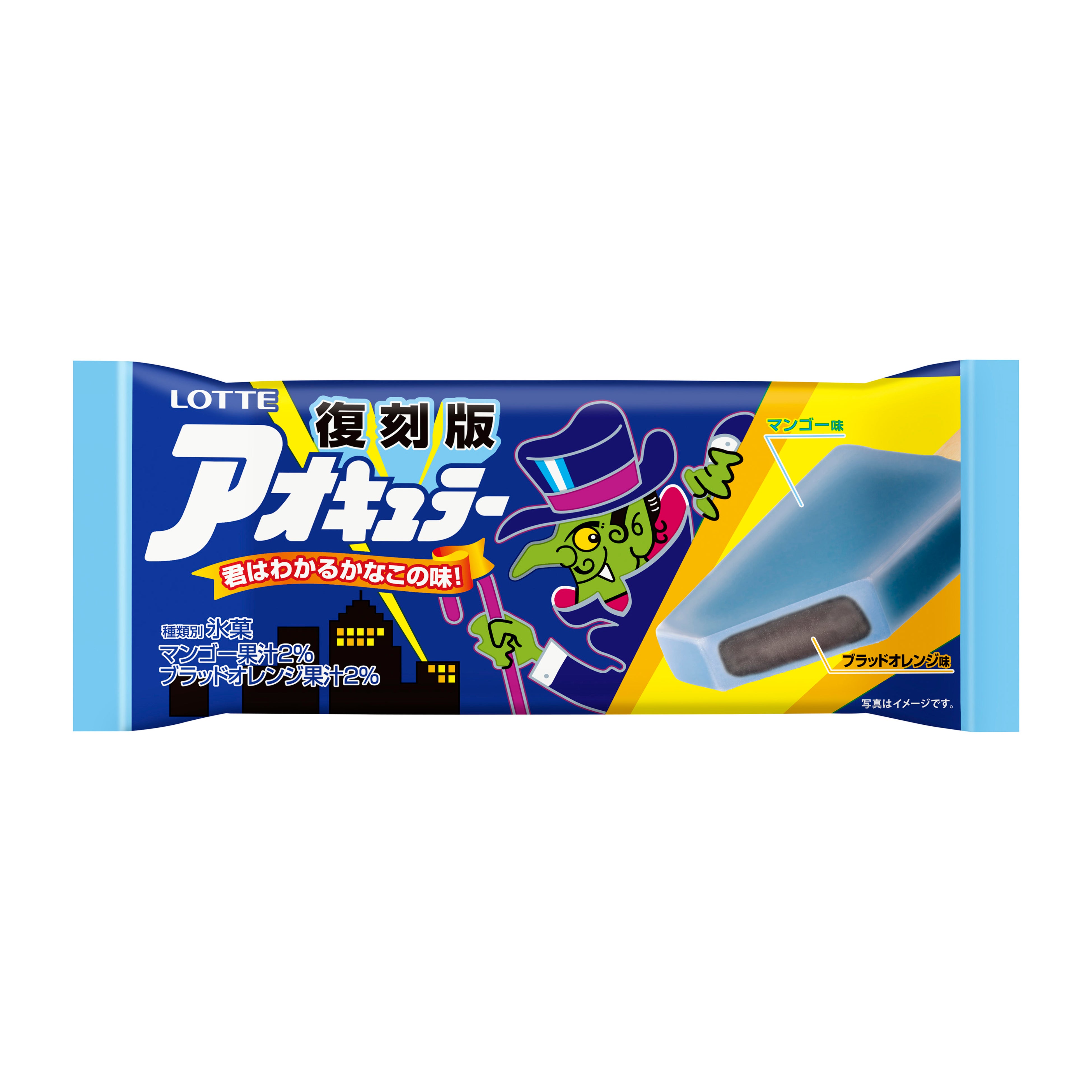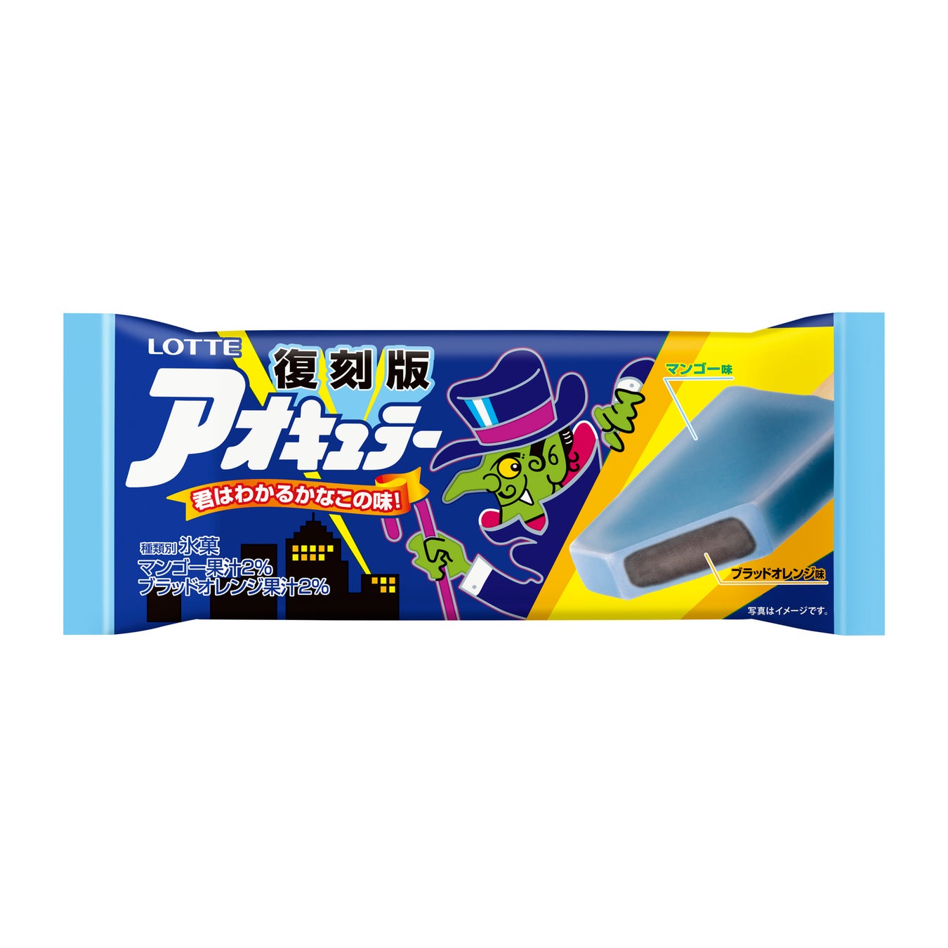 「クロキュラー」は1983年に株式会社ロッテから発売されたアイスで、見た目の色と味のギャップが反響をよび、ドラキュラが登場する特徴的なテレビCMも話題となりました。また、2015年に限定発売された「アオキュラー」もあわせて復刻版として発売いたします。