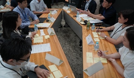 ツアーでは、企業の人事・総務部が、障がい当事者の追体験をすることを目的に、聴覚障がい・視覚障がい・車椅子ユーザーと、健常者がペアになりオフィスや街を歩くプログラムを企画・実施しました。各シーンで感じた問題点をグループで深堀、議論することで、普段なかなか気づけない/言えない課題・解決案を共有しました。さらに、オフィスや街で誰もが心地よく働ける設えや運用ルール、マナーなど、様々な観点において理想の状態やそれを実現するために今すぐできるアクションについて話し合いました。