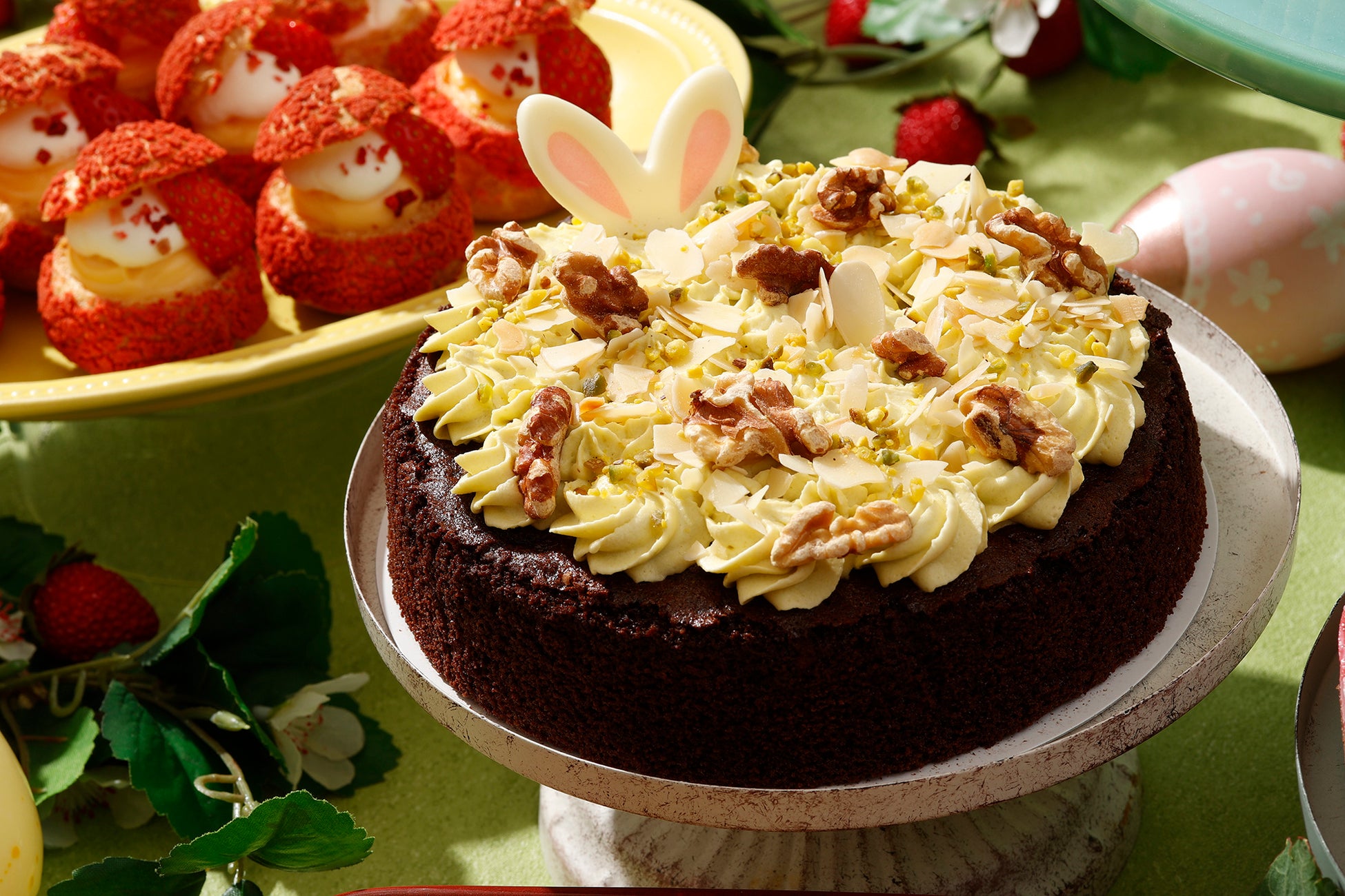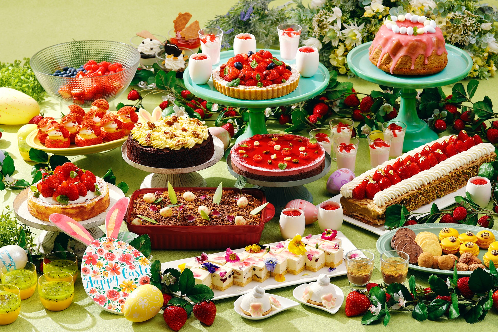 春のピクニック気分を盛り上げる愛らしいイースターモチーフのいちごスイーツをお楽しみください。