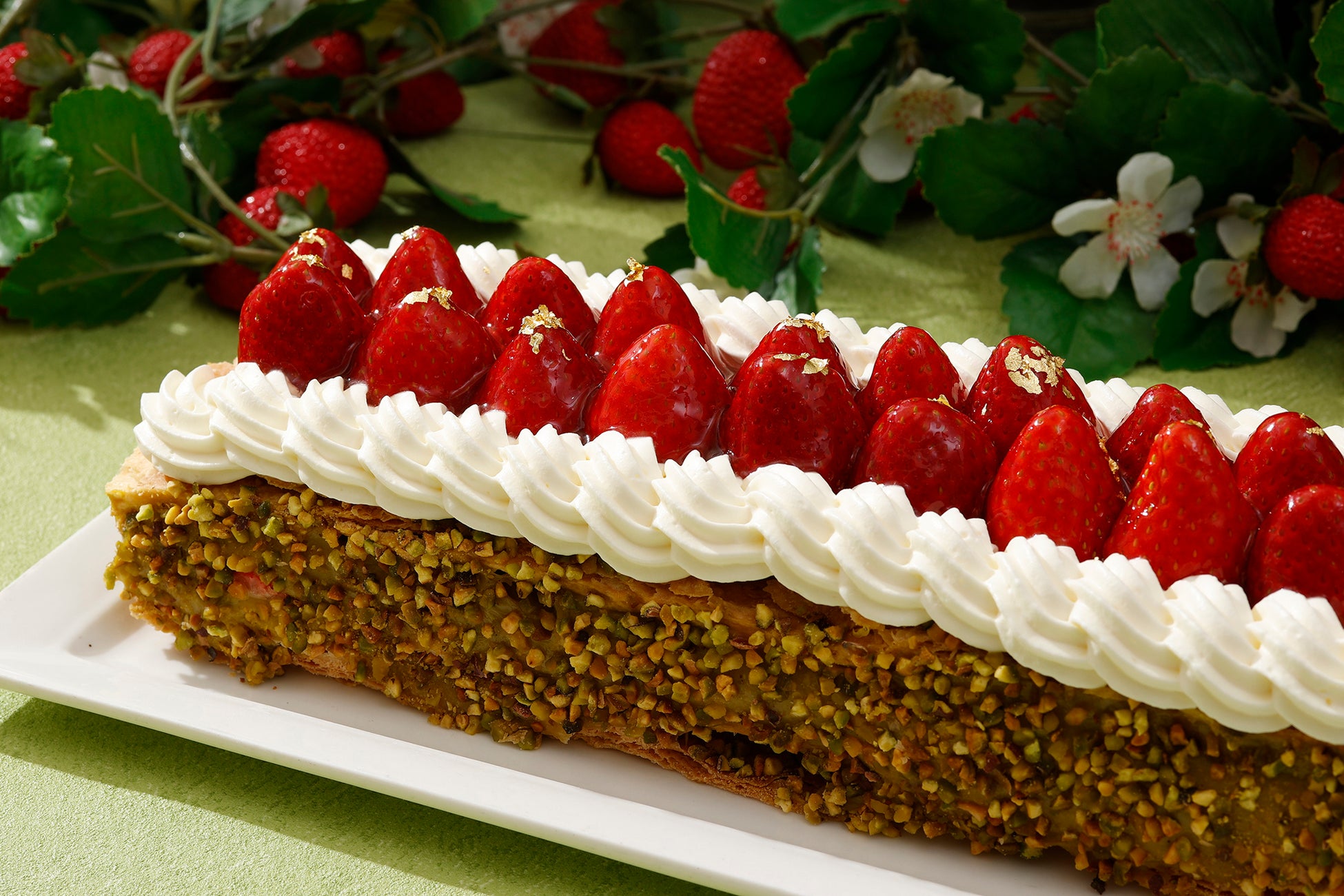 さらに、平日限定でアマレットを使用した濃厚なピスタチオクリームと甘酸っぱいいちごのマリアージュがお楽しみいただけるナポレオンパイを提供いたします。