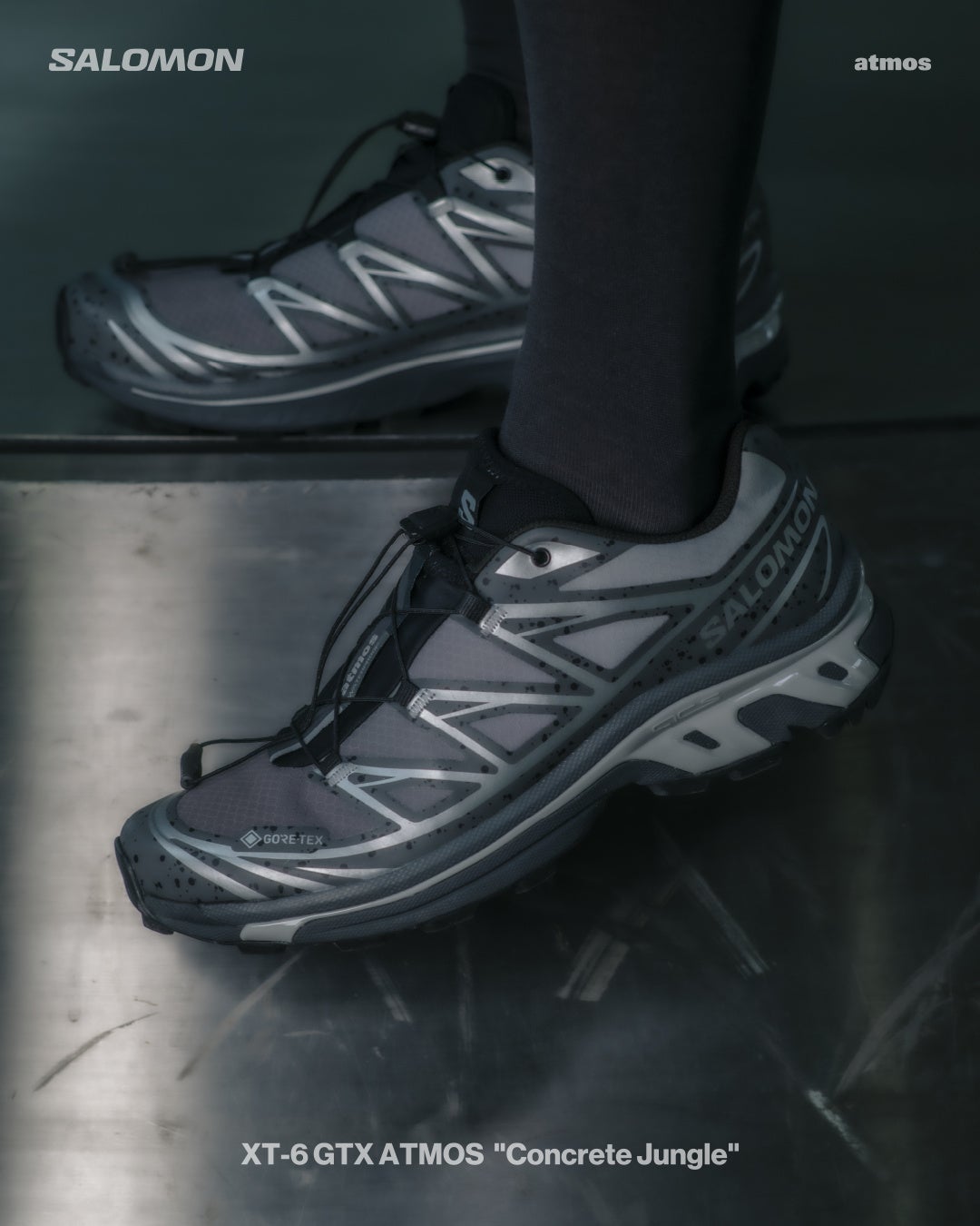 atmos別注、Salomon XT-6 GTX “Concrete Jungle”は、2024年11月27日(水)よりatmosオンラインストアにて抽選開始、12月7日(土)よりatmos、atmos pink各店及びオンラインストアにて販売開始。