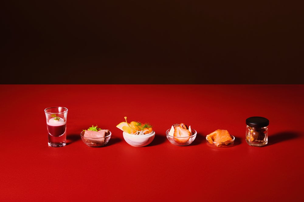 夜の部では、赤・白ワインやカクテルなど、アルコールを含むドリンクが2時間フリーフローでお得に楽しめます。「コールドビーフと赤キャベツのマリネ」など夜の部だけのアペタイザーも登場。梅田の中心部、大阪駅の喧騒が嘘のように、「THE LOBBY LOUNGE」は輝く夜景と静寂に包まれた別世界。夜のアフタヌーンティーはバレンタインのデートにもぴったりです。