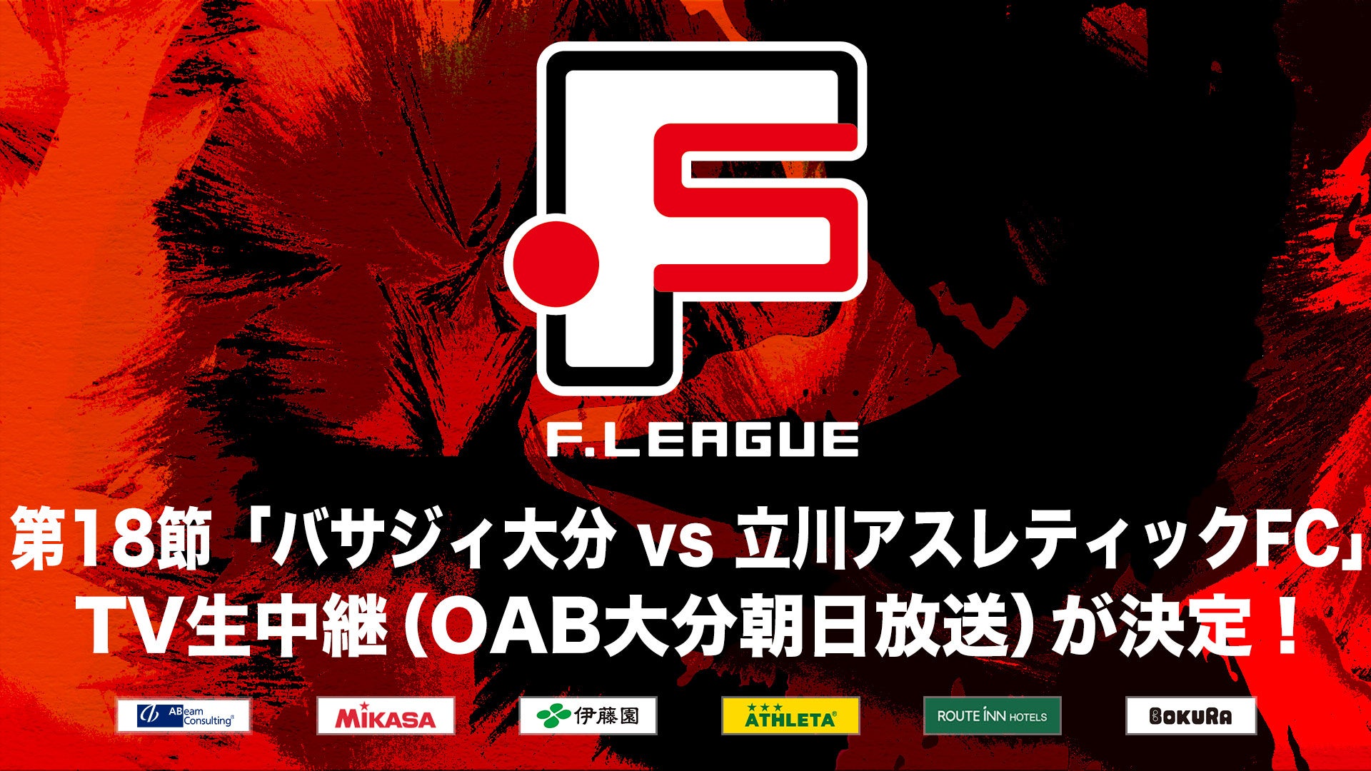 Fリーグ2024-2025 ディビジョン1 第18節「バサジィ大分 vs 立川アスレティックFC」のTV放送が決定しましたのでお知らせいたします。