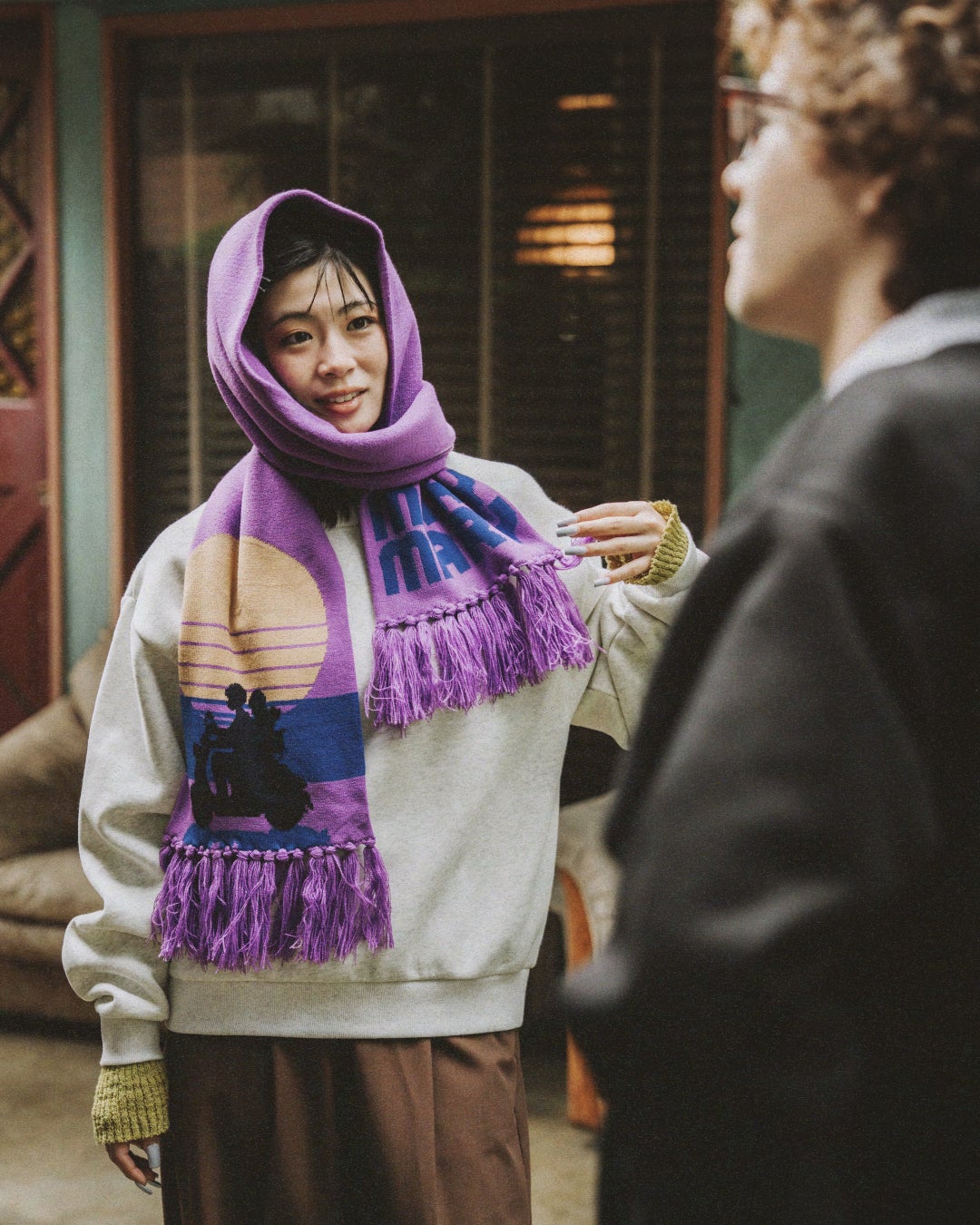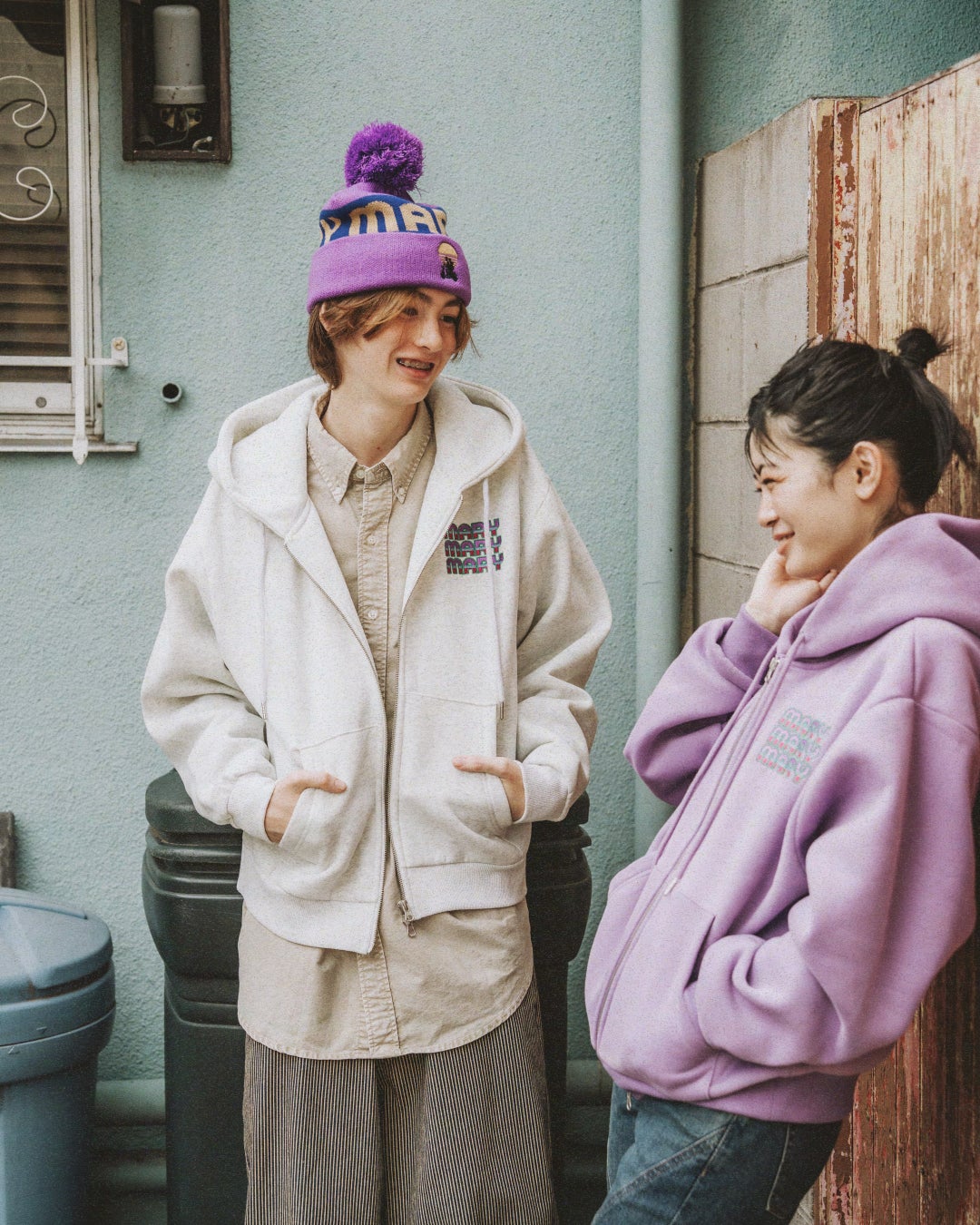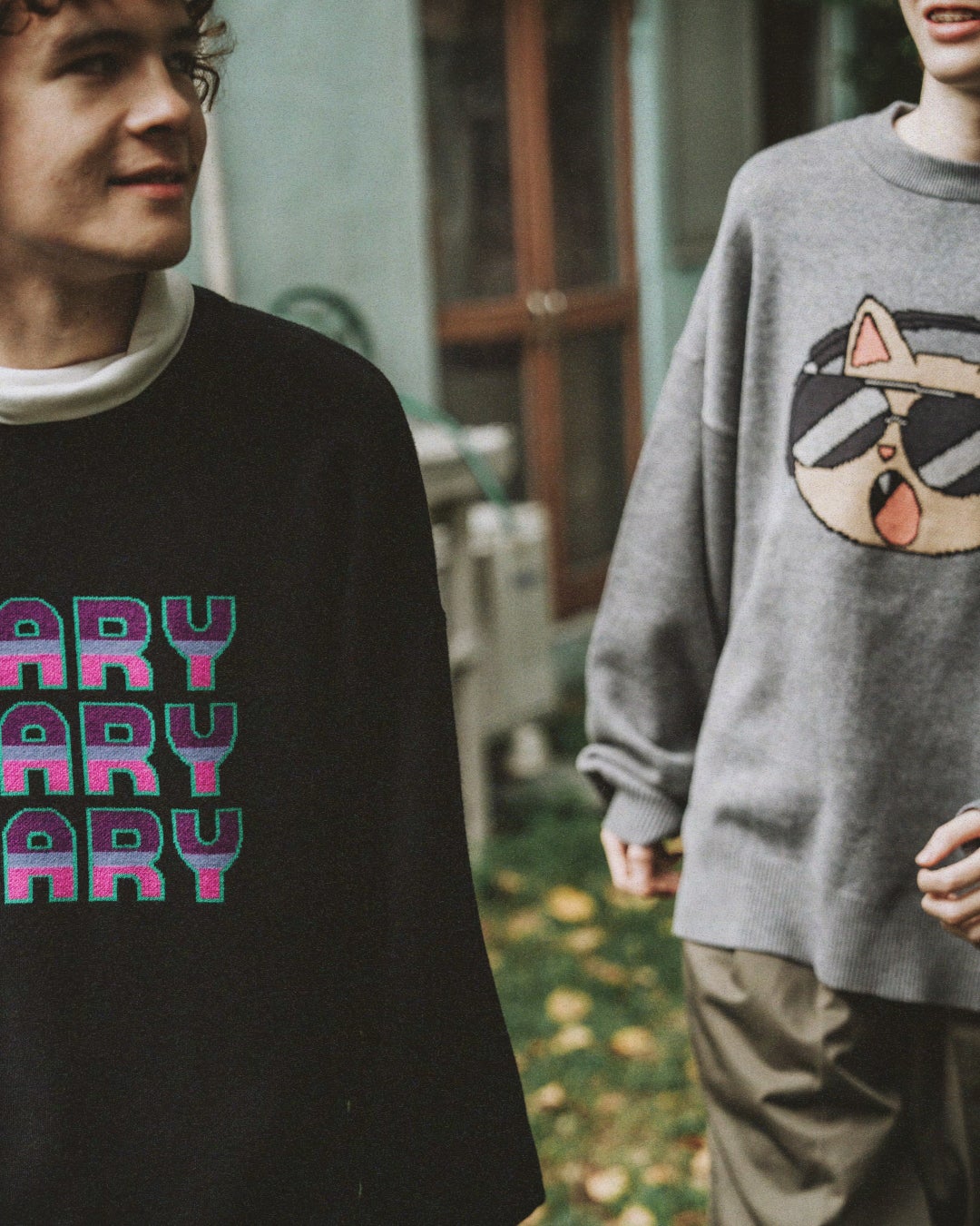 代名詞となる”エモい”イラストがプリントされたスウェットやニットなど、秋冬に活躍するウェアをはじめ、ニット帽やマフラーなどのアパレル小物を計6型展開する。