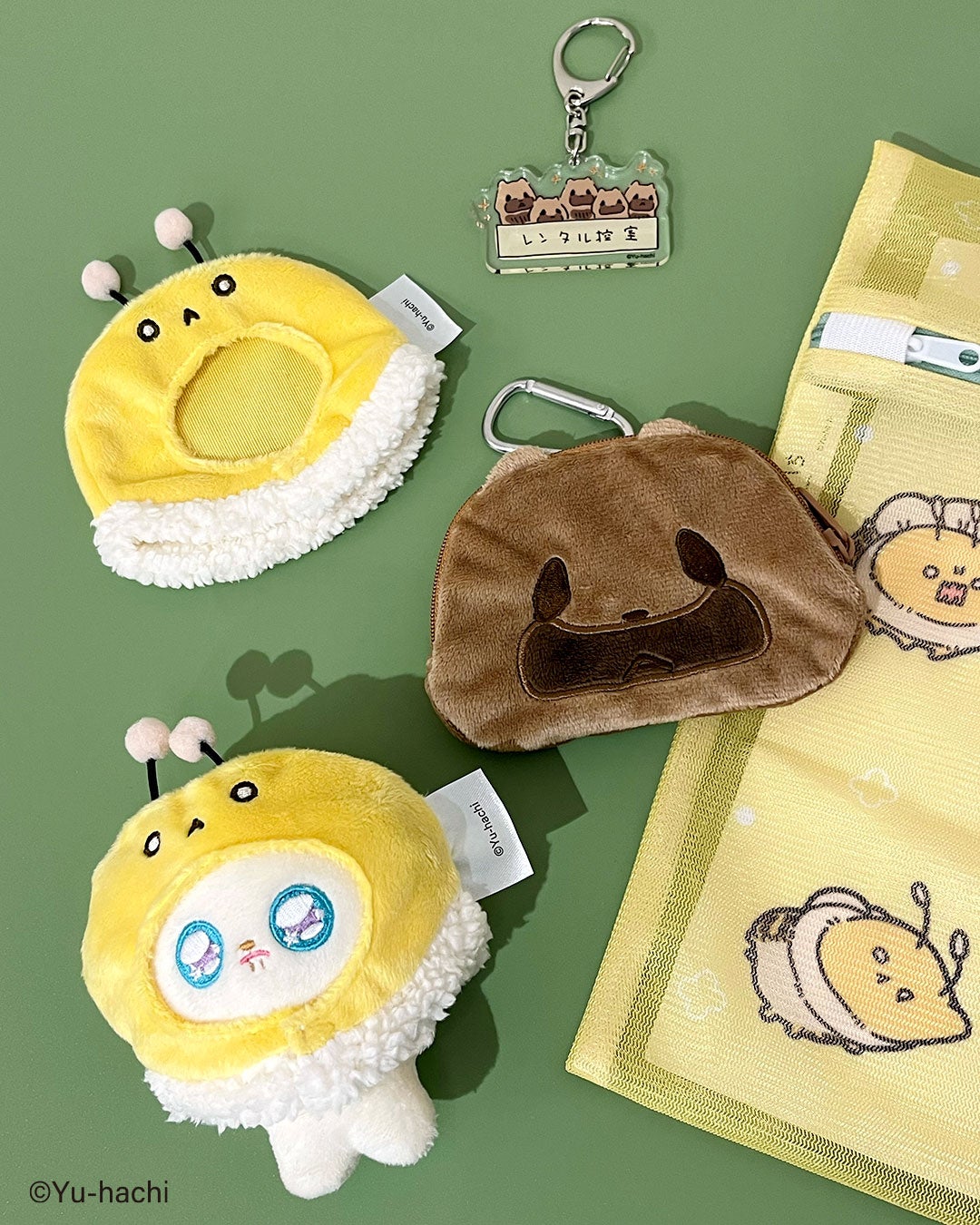 ◆ぬいぐるみ用着ぐるみ、アクリルキーホルダー、ダイカットポーチ/各390円(税込429円)