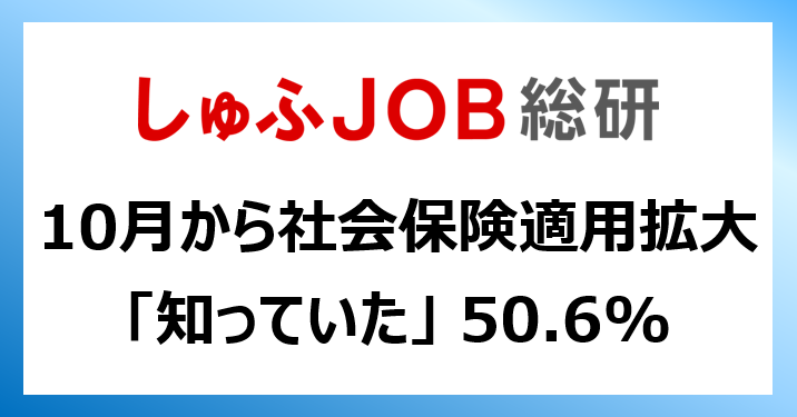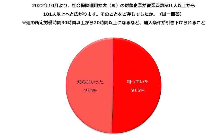 - 2022年10月から社会保険適用拡大の対象企業が従業員数101人以上に広がることを「知っていた」50.6%