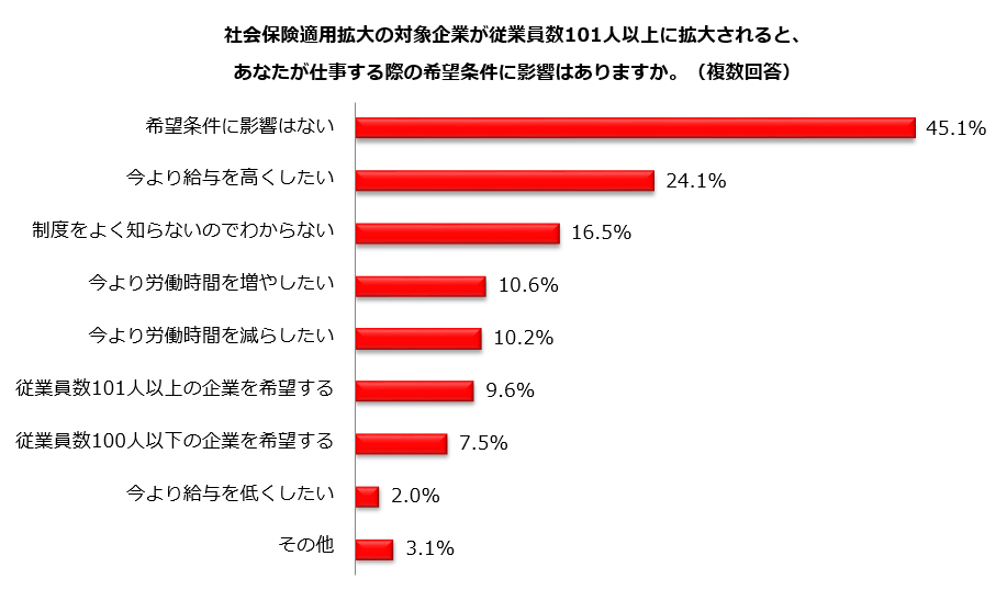 - 対象企業が101人以上に拡大されても「希望条件に影響はない」45.1%