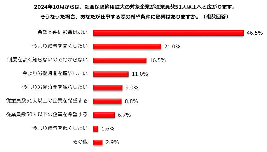 - 対象企業が51人以上に拡大されても「希望条件に影響はない」46.5%