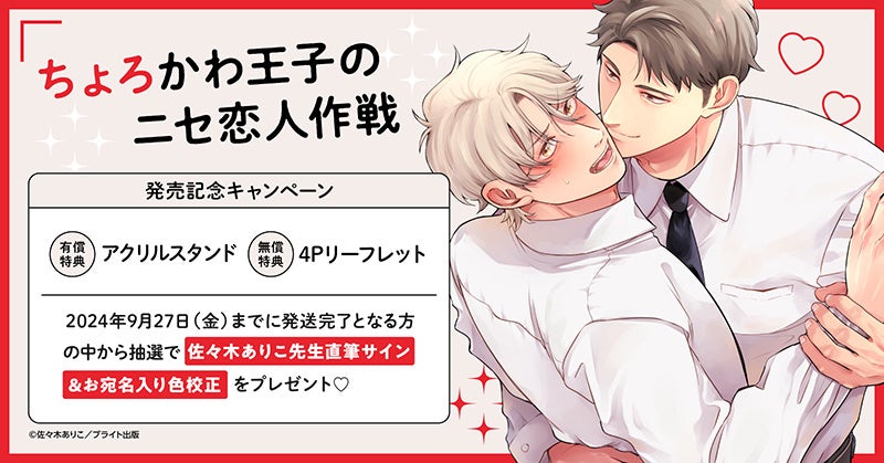 ★!佐々木ありこ先生『ちょろかわ王子のニセ恋人作戦』発売記念キャンペーン開催!★【ホーリンラブブックス】