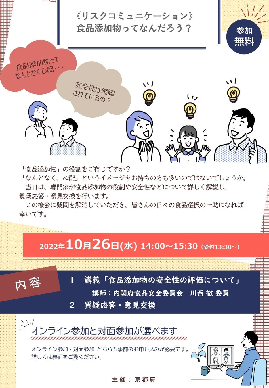 専門家が食品添加物の役割や安全性などについて詳しく解説し、 質疑応答・意見交換を行います。