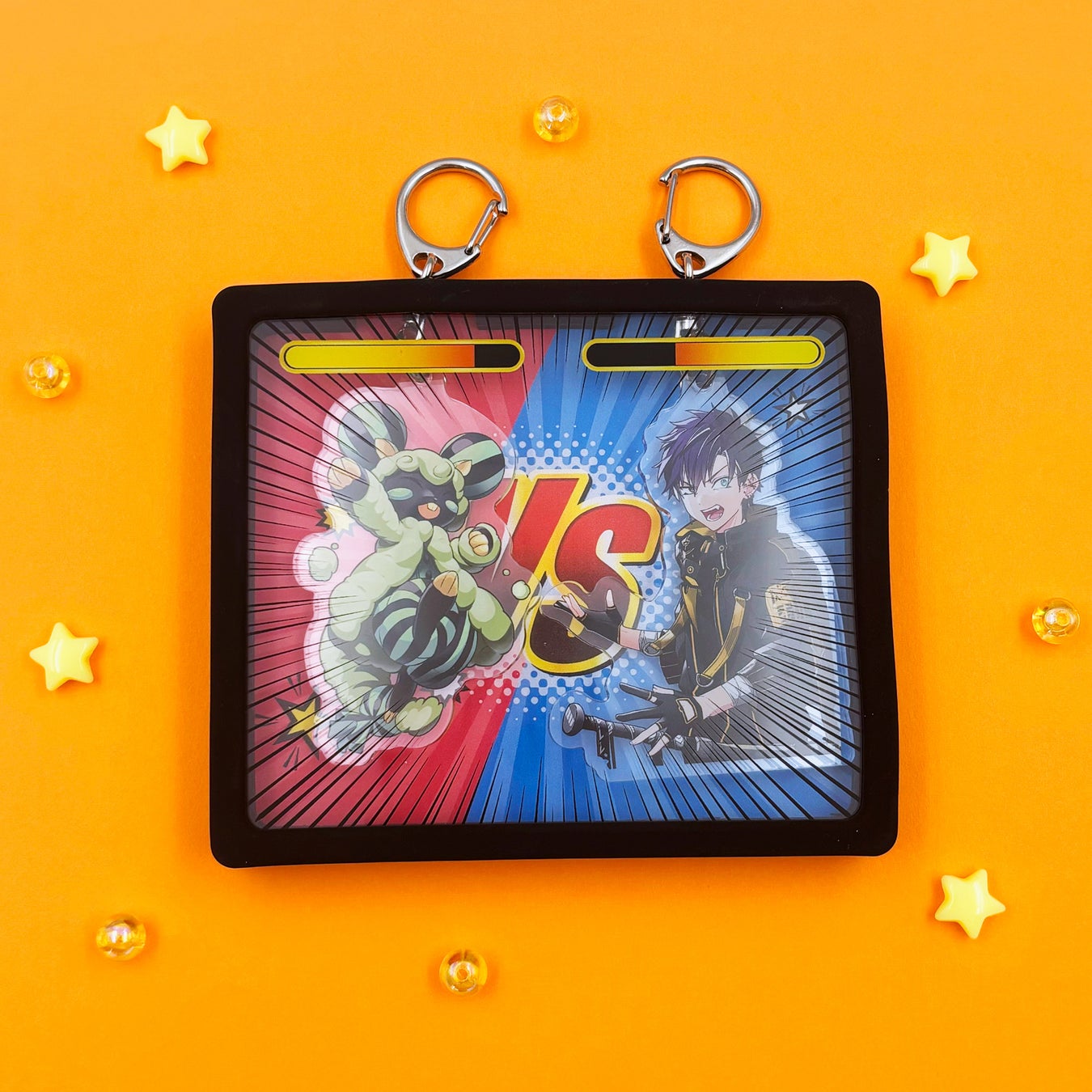 キャラフレームは、2枚のアクリルカードをゴムフレームに差し込んで使用します。