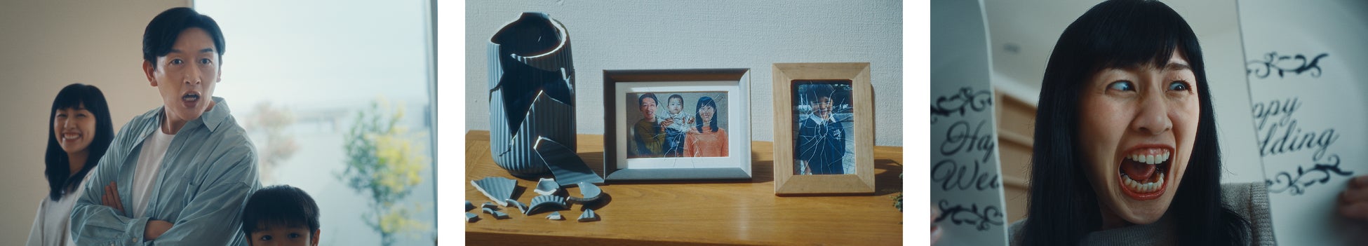 しかし、子どもがある異変に気づき、父に告げる。父の顔から笑顔が消える。引越し作業員が持っていたテレビの液晶が見事にひび割れていた。周りを見渡すと、花瓶、写真立て、食器、全てが壊れていた。