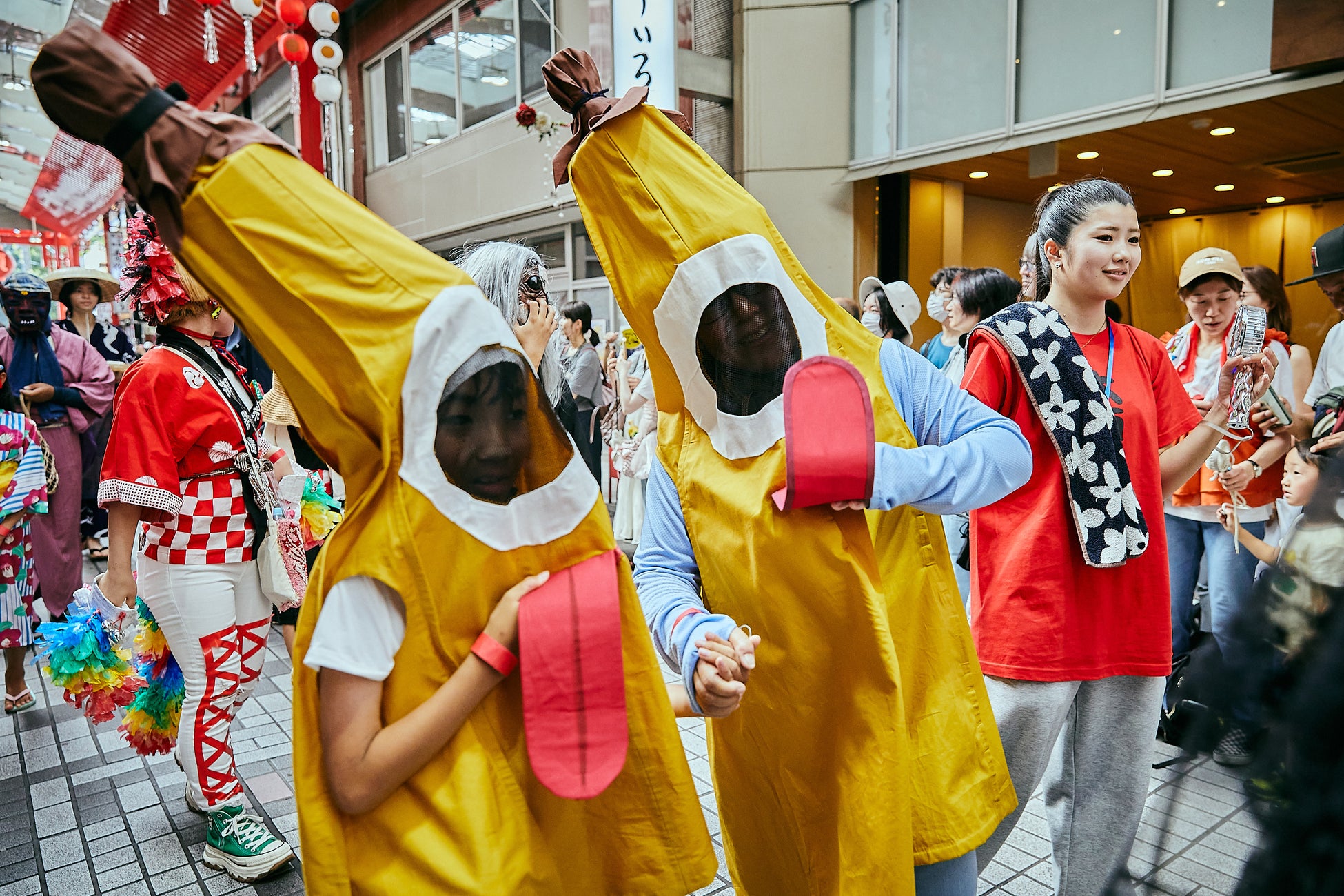 日本の妖怪伝承に由来しいろいろな妖怪が列をなして練り歩く「百鬼夜行」を、名古屋の夏の風物詩『大須夏まつり』と『動き出す妖怪展 NAGOYA』とのタイアップにて開催。「天狗」「河童」「から傘おばけ」「豆腐小僧」など、個性豊かな妖怪たちが大須商店街を練り歩き、沿道は大いににぎわいました。妖怪たちの写真撮影を楽しむ方も多く、大盛況のうちにパレードは終了。年齢や性別を問わず、商店街を訪れた多くの方が足を止めてパレードに見入り、改めてYOKAIカルチャーの根強い人気を実感する機会となりました。また、『動き出す妖怪展 NAGOYA』も、開幕から早くも来場者3万人を突破し、大変ご好評をいただいています。この夏、名古屋は妖怪イベントで大いに盛り上がりを見せています。