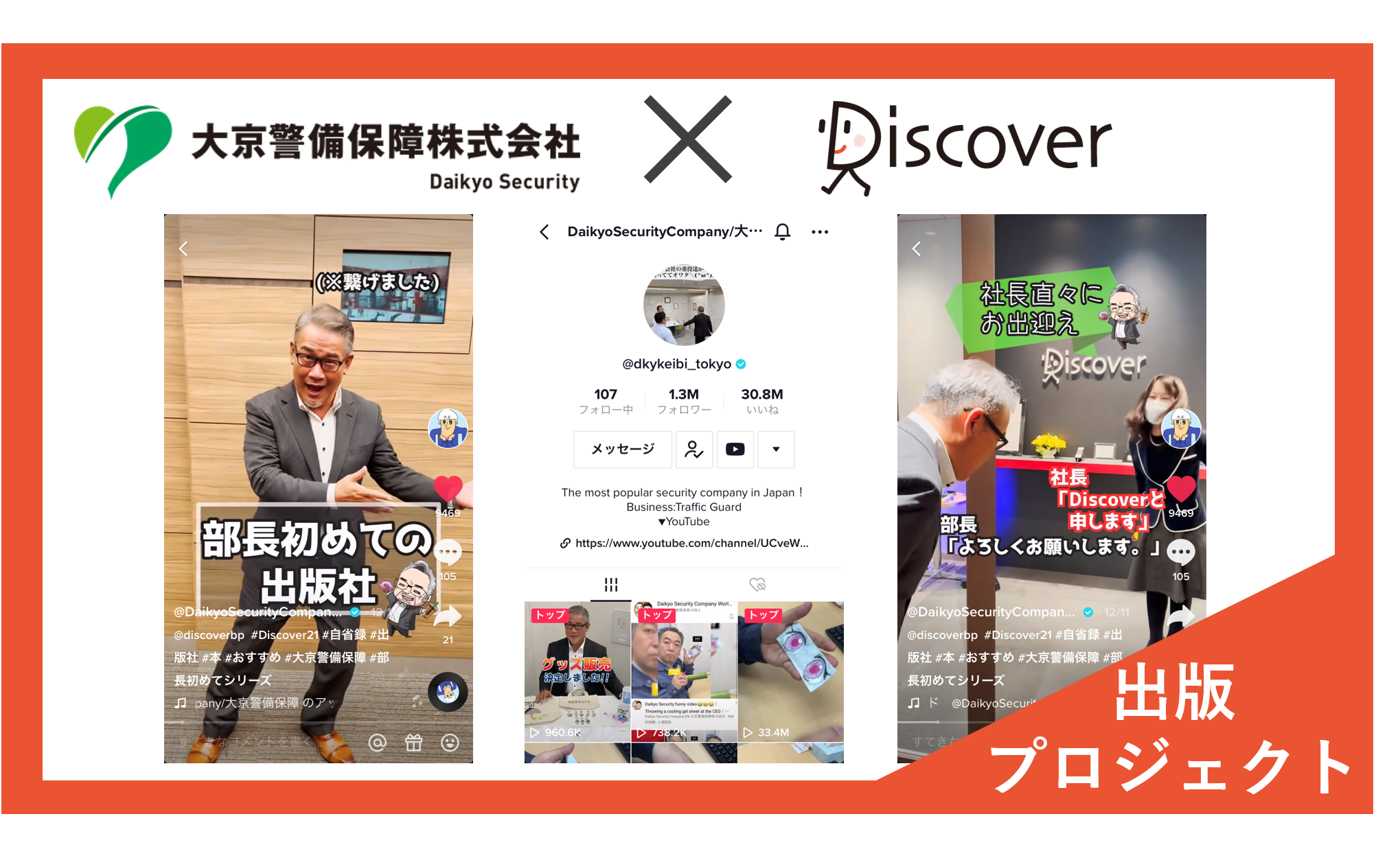株式会社ディスカヴァー・トゥエンティワン(本社:東京都千代田区、取締役社長:谷口奈緒美)は、Tiktokのフォロワーが100万人を突破した大京警備保障株式会社(本社:東京都新宿区、代表取締役社長:櫻井大輔)との出版プロジェクトを実施します。