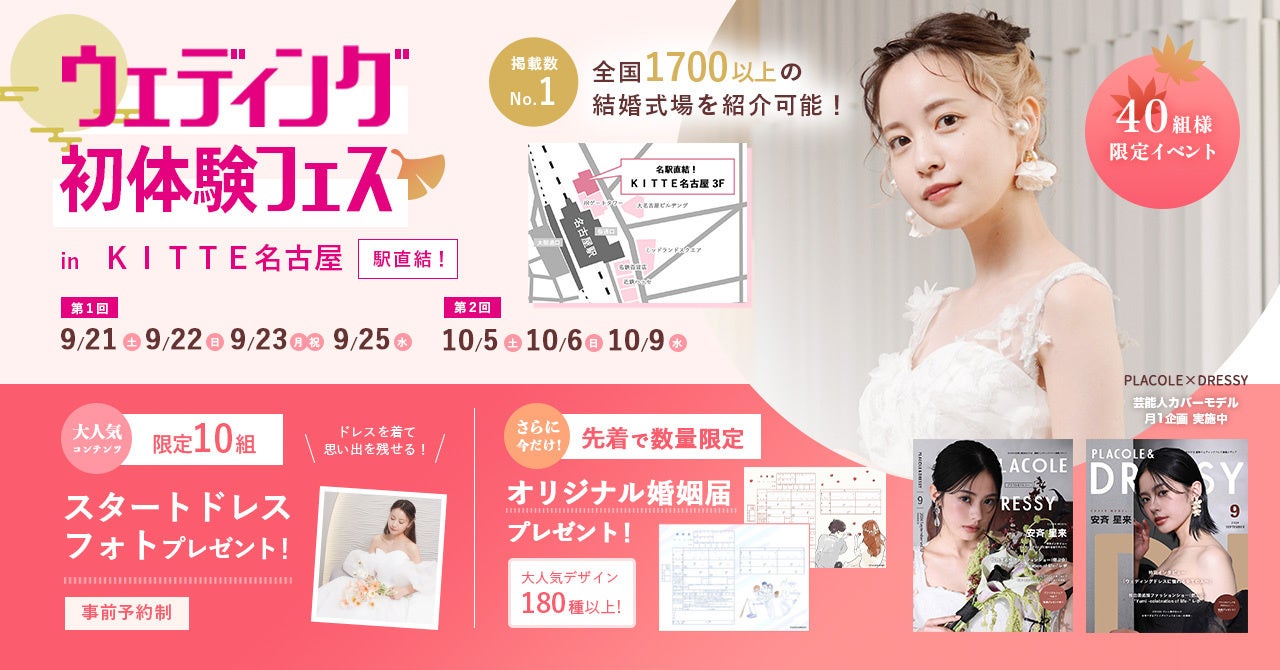 【9/21(土)-23(月)25(水)限定】<名古屋駅直結>豪華特典付き!ウェディング初体験フェス開催決定 in DRESSYCAFE