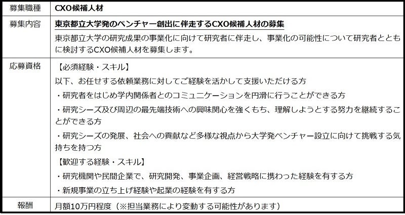 (案件例)東京都立大学発ベンチャー創出に向けた、CXO候補人材募集