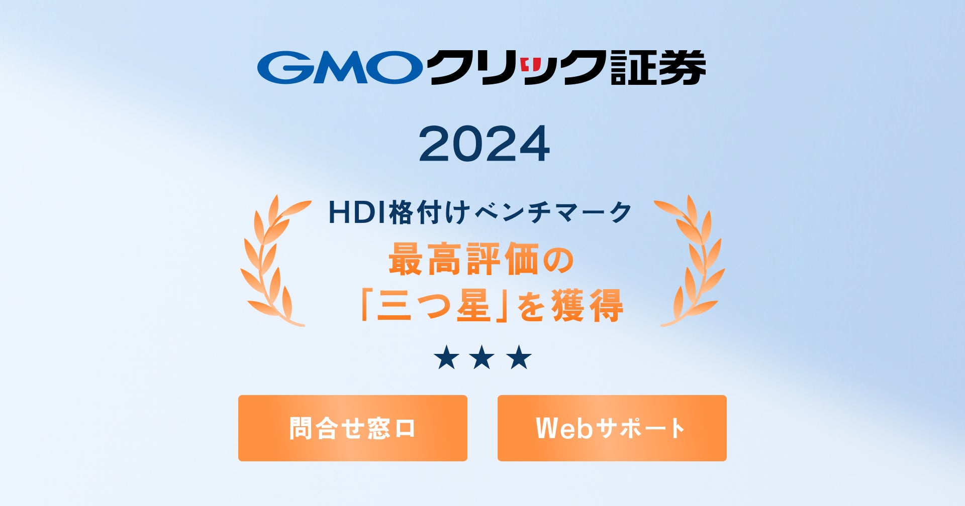 GMOインターネットグループのGMOフィナンシャルホールディングス株式会社の連結会社で、金融商品取引業を営むGMOクリック証券株式会社(本社:東京都渋谷区、代表取締役社長:高島 秀行、以下:当社)は、サポートサービスにおける世界最大のメンバーシップ団体であるHDIの日本拠点HDI-Japanが主催する『「HDI格付けベンチマーク」2024年【証券業界】』の「問合せ窓口」及び「Webサポート」の両部門において、最高評価となる三つ星を獲得しましたので、お知らせいたします。