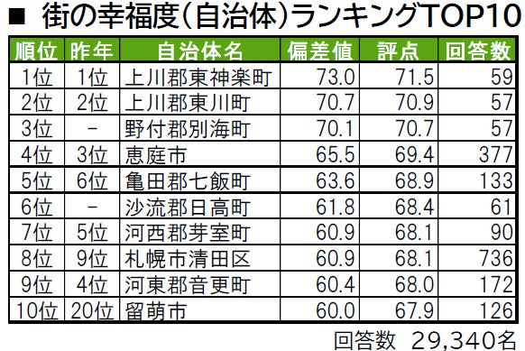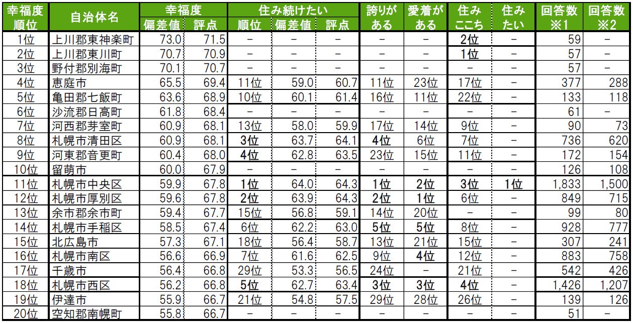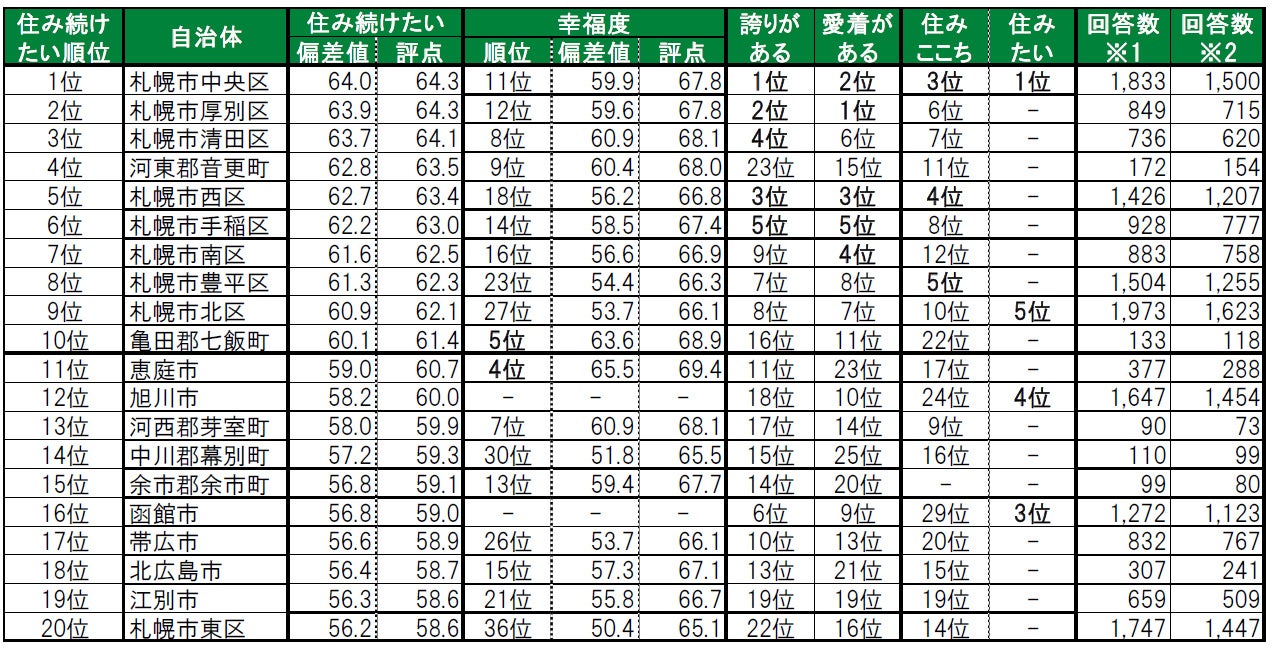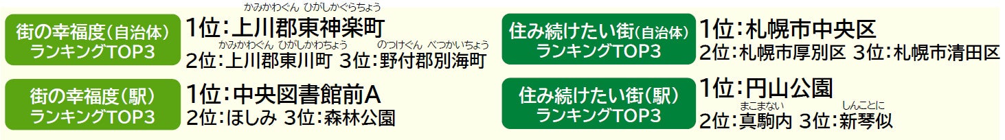 いい部屋ネット「街の幸福度 & 住み続けたい街ランキング2022<北海道版>」(街の住みここちランキング特別集計)発表