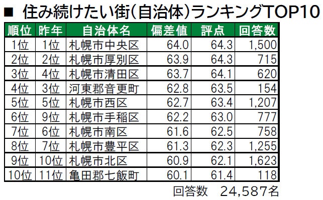 ■住み続けたい街(自治体)トップは、2年連続で札幌市中央区