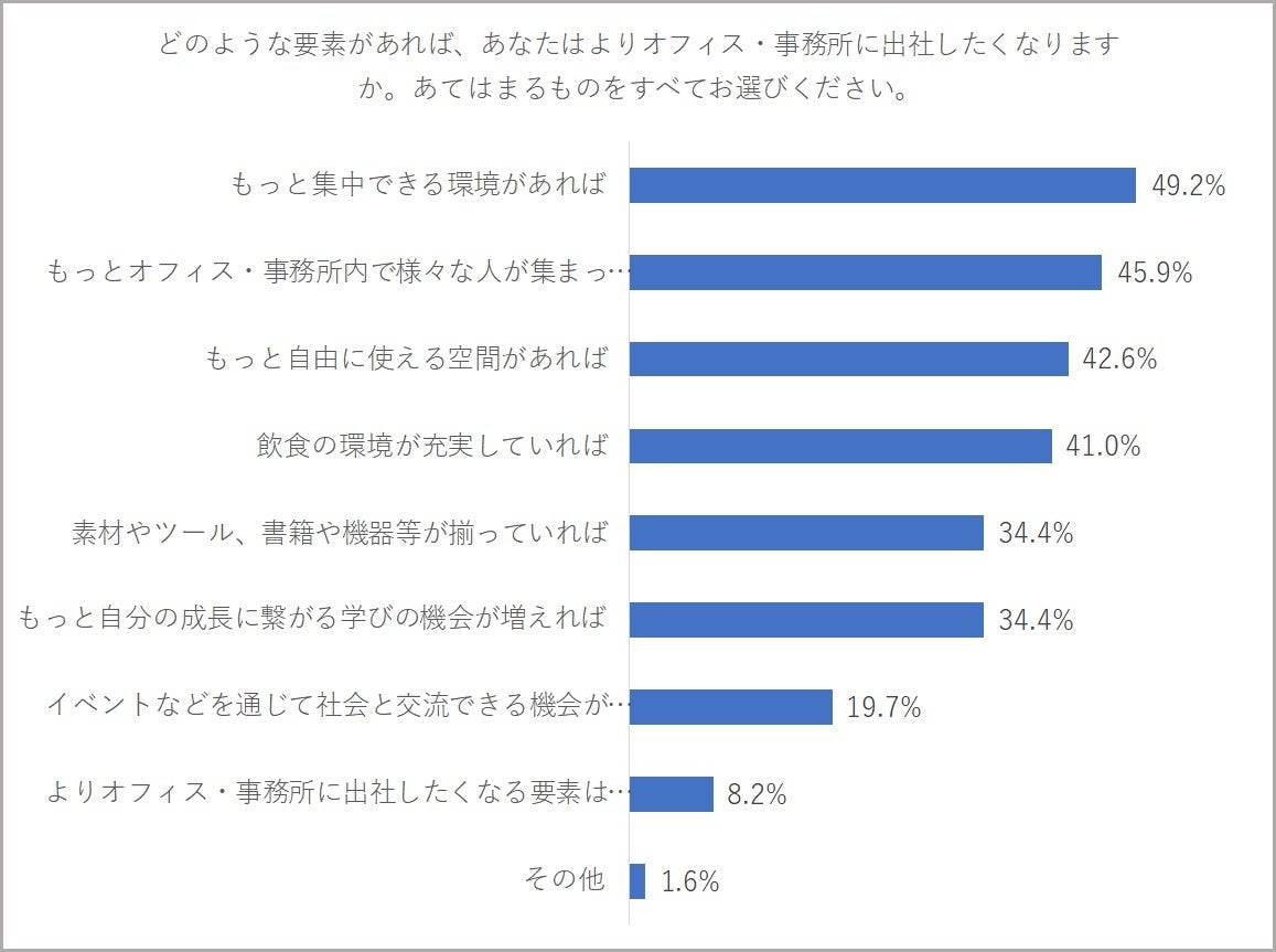 n=122(「出社するオフィス空間や働く環境への関心が高まった」と回答された方対象) ※複数回答