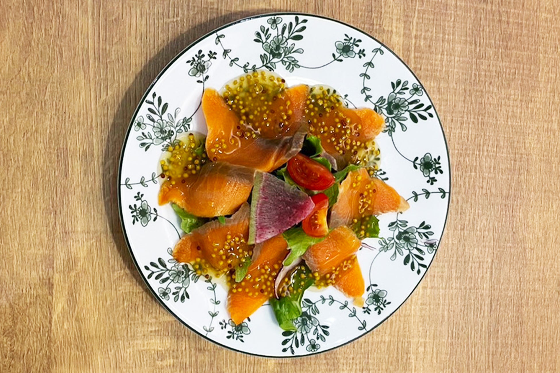 【スモークサーモンのハニーマスタードカルパッチョ】880円