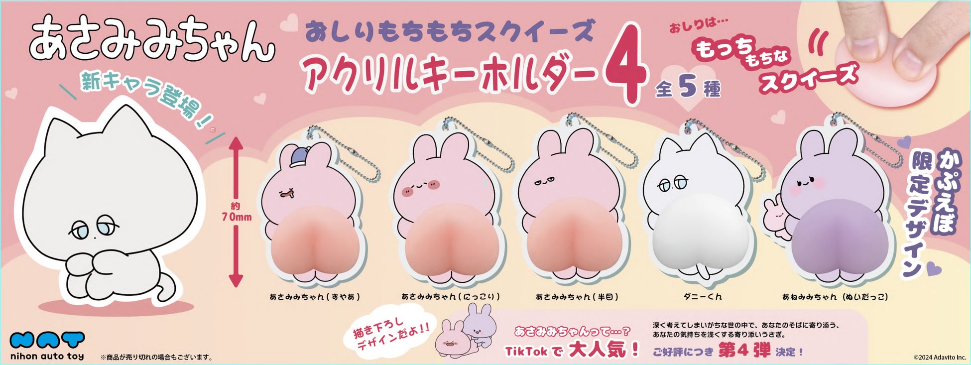 ダニーくん初登場の「あさみみちゃん おしりもちもちスクイーズアクリルキーホルダー 第4弾」8月9日(金)より「かぷえぼ」カプセルトイで先行展開