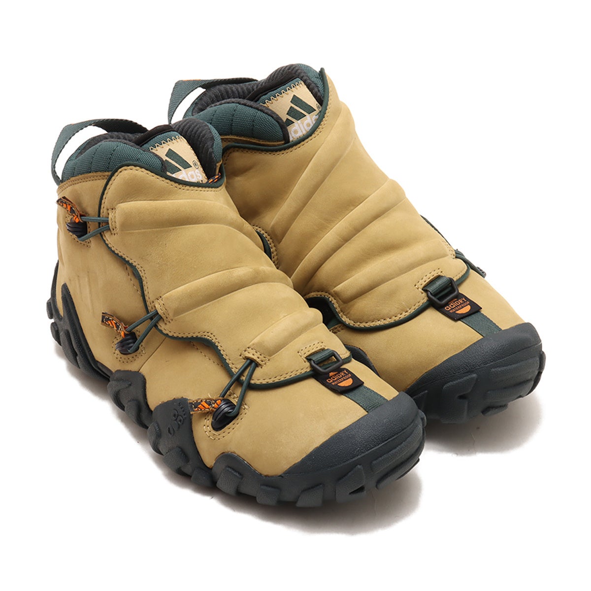 1990年代当時ベスト・オブ・アディダスと称され、様々なカテゴリーにおいてのパフォーマンスを重視した最高峰のテクノロジーを搭載したコレクション「adidas EQUIPMENT(アディダス エキップメント)」。本作は、そのEQUIPMENTのAdventure(アドベンチャー)カテゴリーから発売になった「Adventure Hi(アドベンチャーハイ)」からインスパイアされた、オリーブ、モスグリーンのカラーパレットを採用。当時のオリジナルモデルを彷彿させるレトロなムードもありながらatmosのフィルターを通し現代に蘇らせた一足。