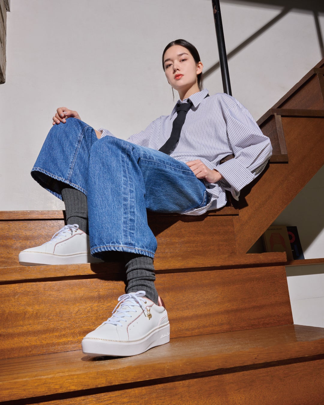 また、「フェミカジスニーカー」は、“きちんと見え”を叶えるコレクションとして登場します。ヒールアップスニーカーや厚底スニーカー、ロープロスニーカーまで、幅広いデザインを展開します。クールなスタイリングのアクセントとしても映え、さりげなく女性らしさをプラスしてくれます。