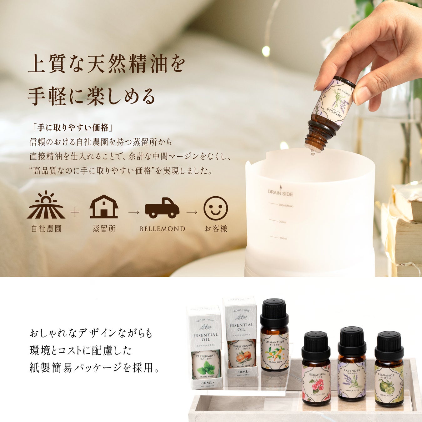 AROMA FLOWでは「香り × 癒し × デザイン」をテーマに、日常を少しだけ豊かにするアロマアイテムを展開していきます。