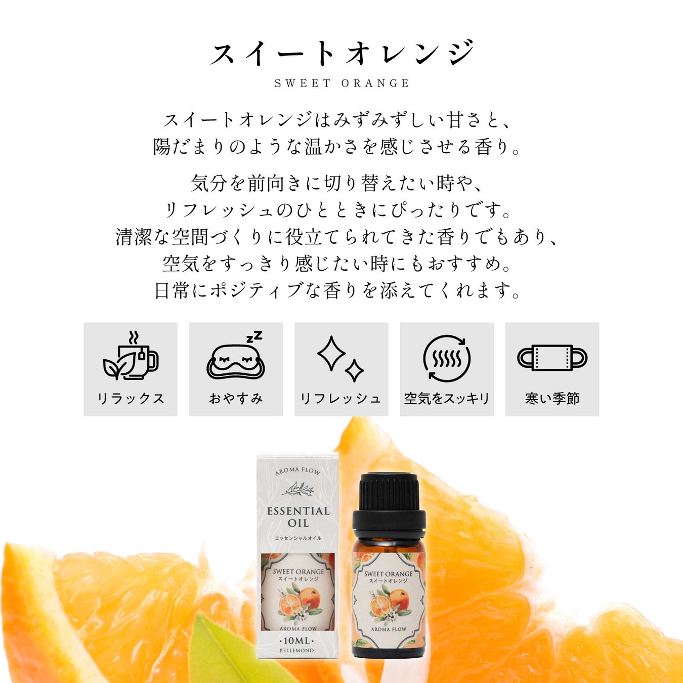 天然100%のアロマオイル、AROMA FLOW(アロマ フロー)から誕生。季節限定・キンモクセイを含む6種類の精油が登場。手に取りやすい価格で、合成香料不使用の10ml。楽天市場で先行販売