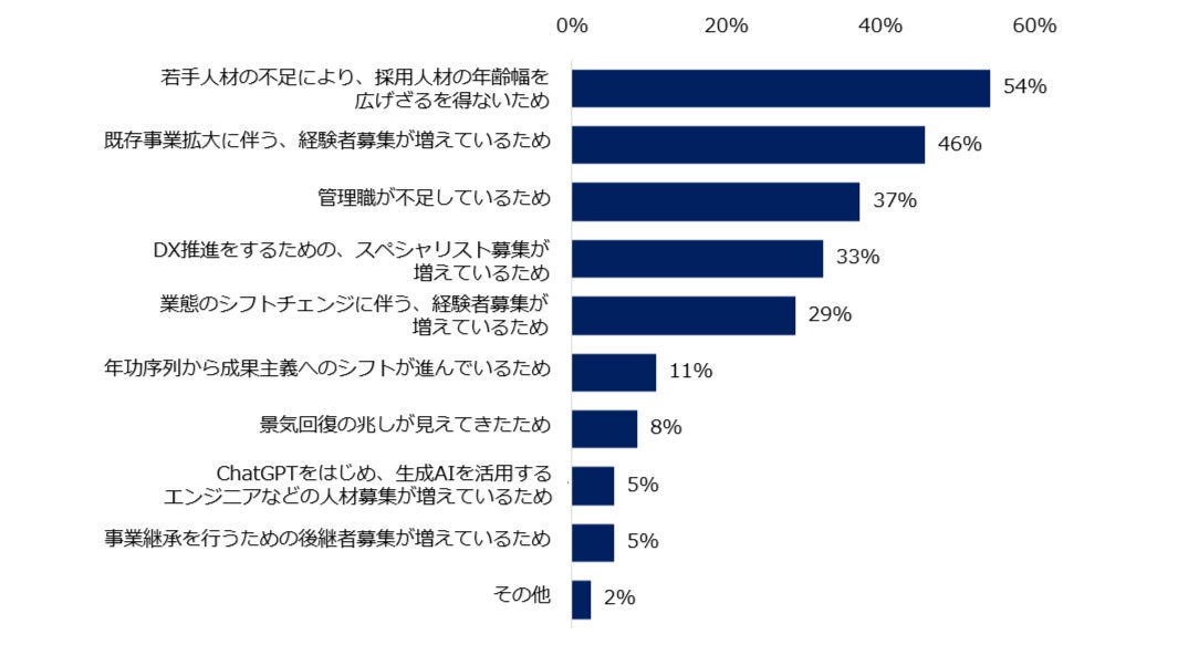 ★ 2024年にミドル求人が増加する理由、トップは「若手人材不足による採用人材の年齢幅拡大」。