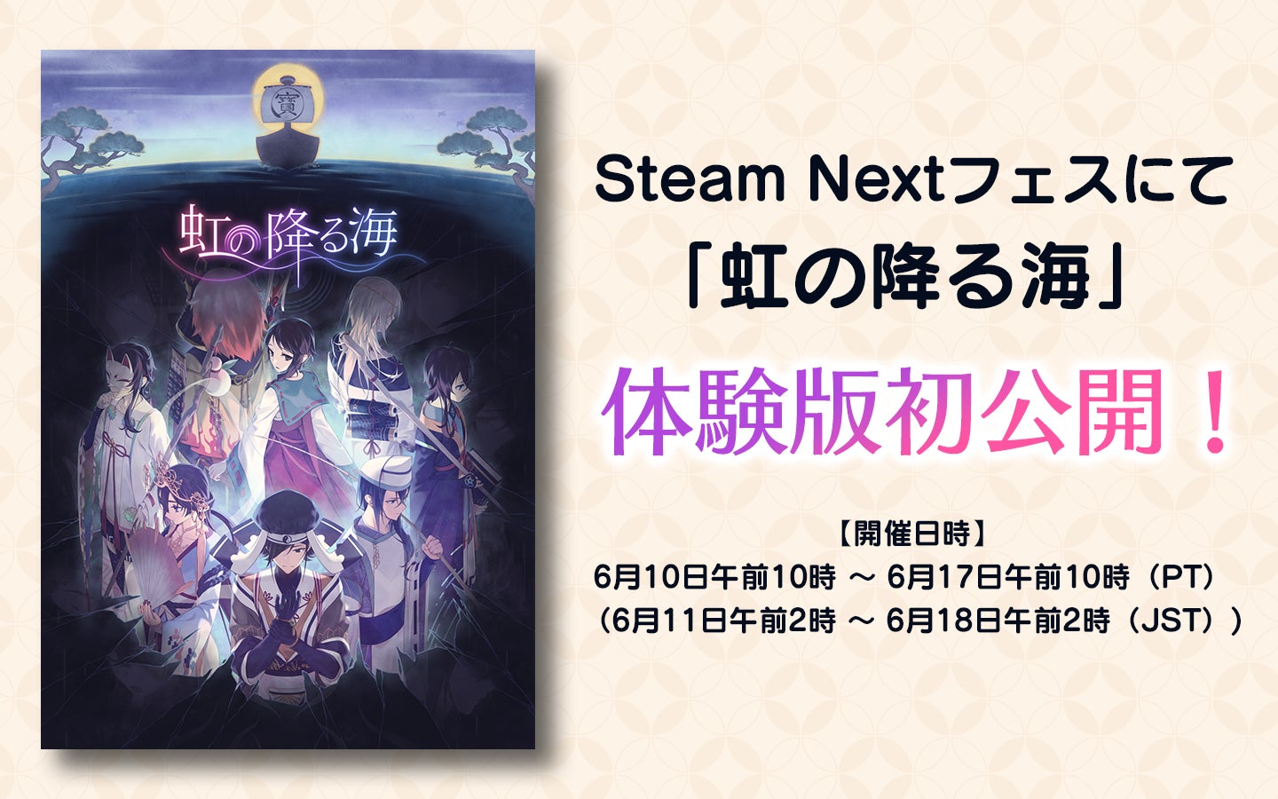 6月10日午前10時 ~ 6月17日午前10時(PT)にSteamにて開催される「Steam Nextフェス」にて、「虹の降る海」の体験版を初公開いたします。