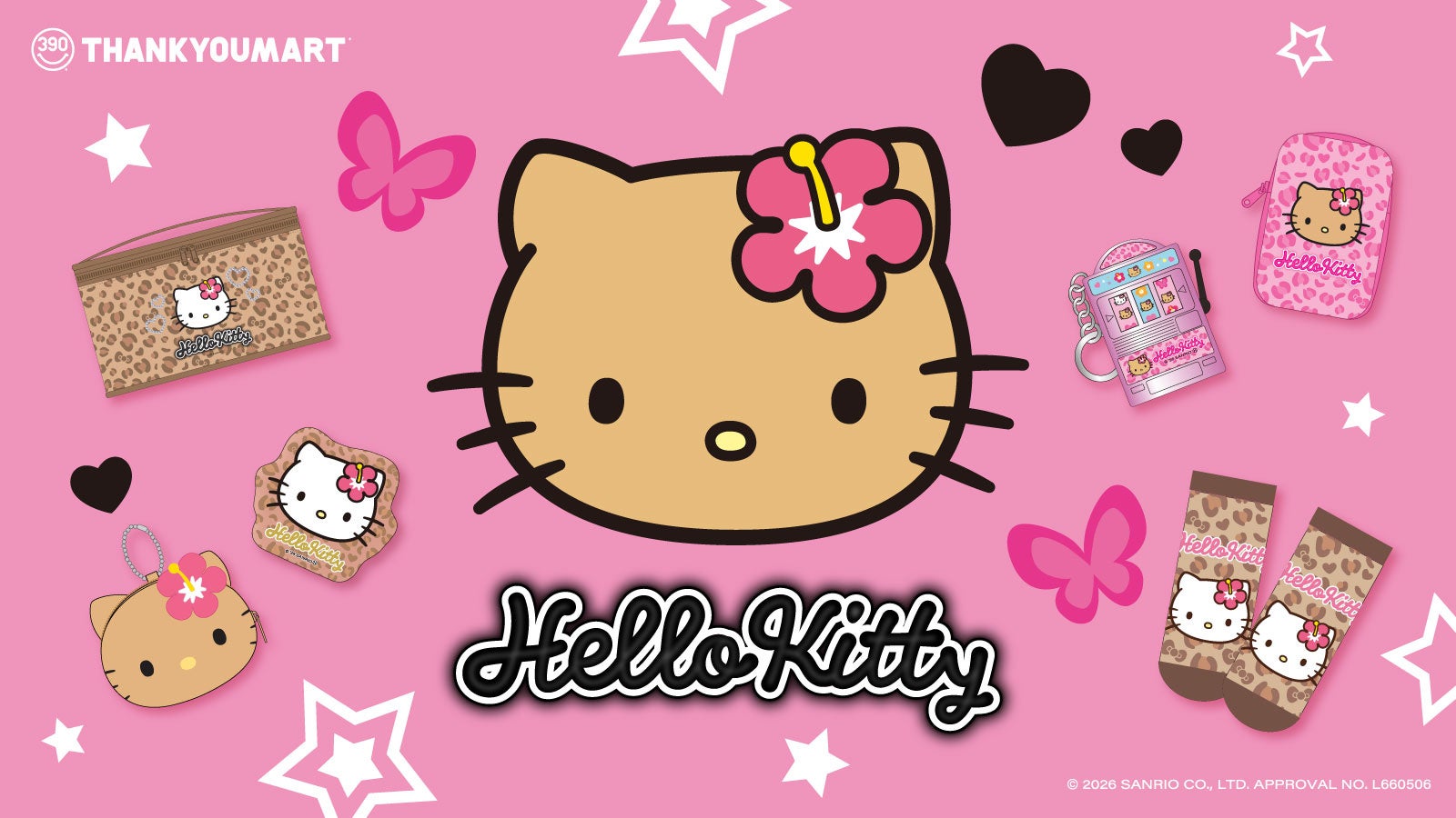 「Be Smile, Be Kawaii」をテーマに、キャラクターの限定アイテムを中心としたカワイイ推しグッズがいつ来てもALL390円で手に入るショップ「サンキューマート」(エルソニック株式会社)は、株式会社サンリオの大人気キャラクター「ハローキティ」の限定アイテムを、全国のサンキューマート店舗で3月下旬より入荷次第販売開始いたします。