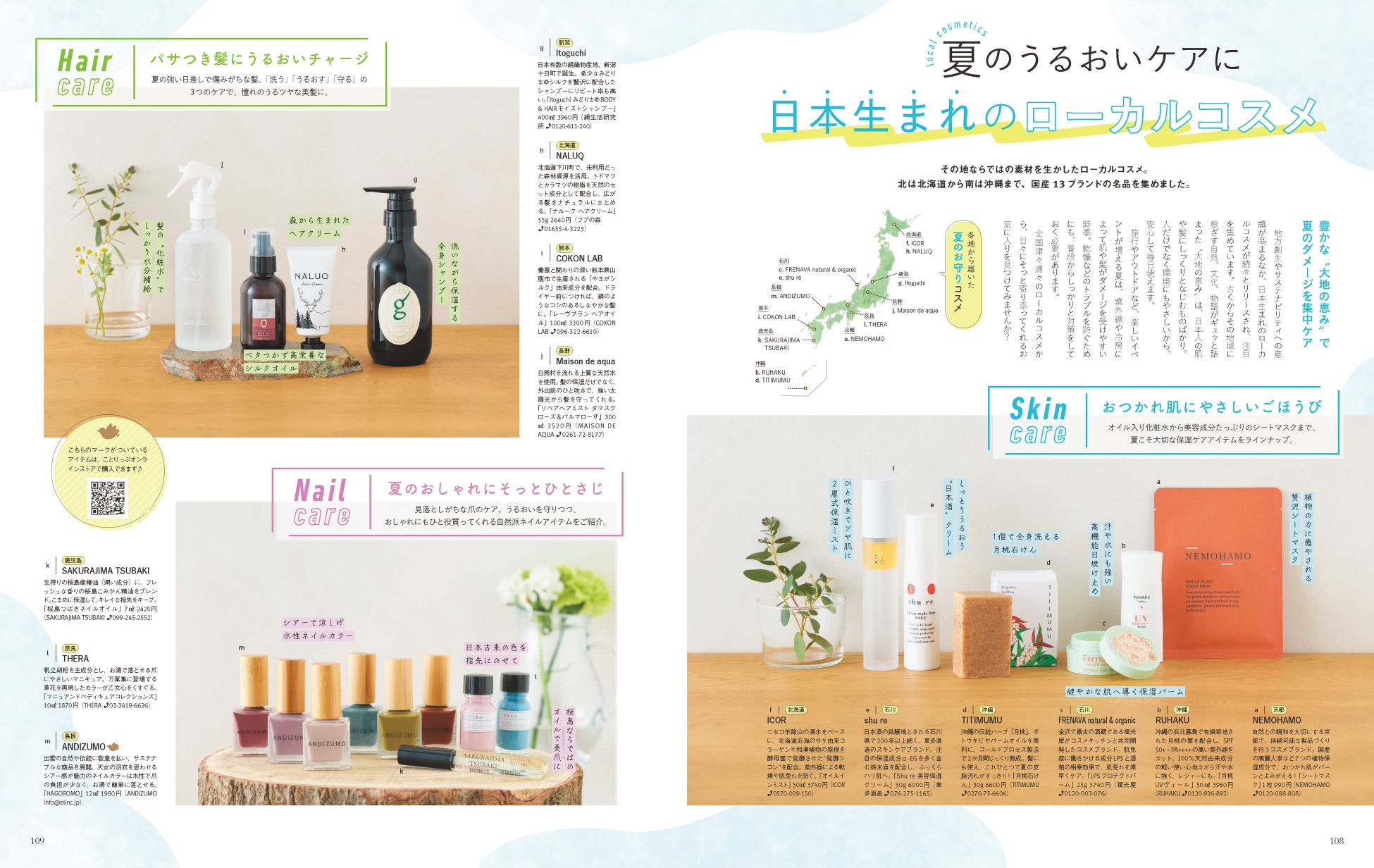 ◆日本各地で生まれたローカルコスメは、その土地ならではの素材を活かし、夏のダメージから髪や肌、爪を守ります。古くから土地に根差した<大地の恵み>は日本人の肌や髪にしっくりとくるものばかり。自然の恵みで優しくケアし、美しさを引き出すアイテムが揃っています。(コスメ)