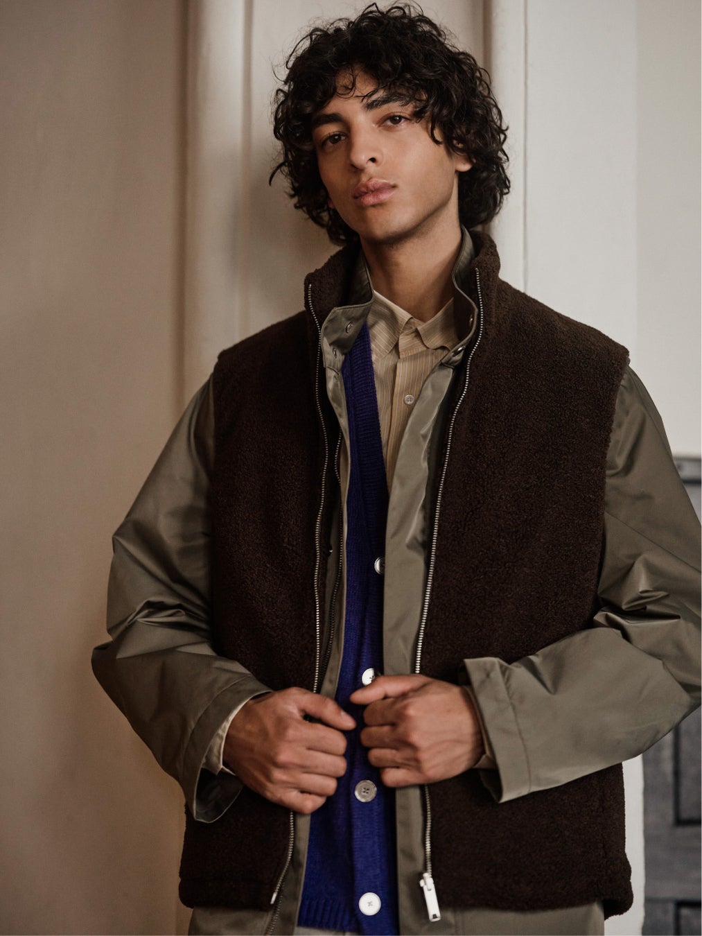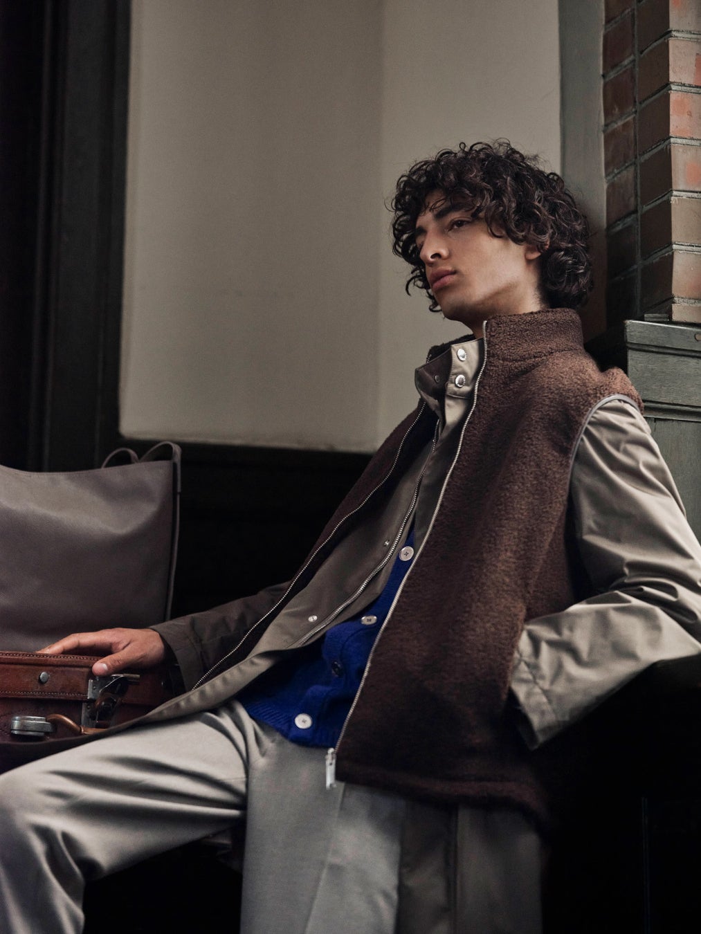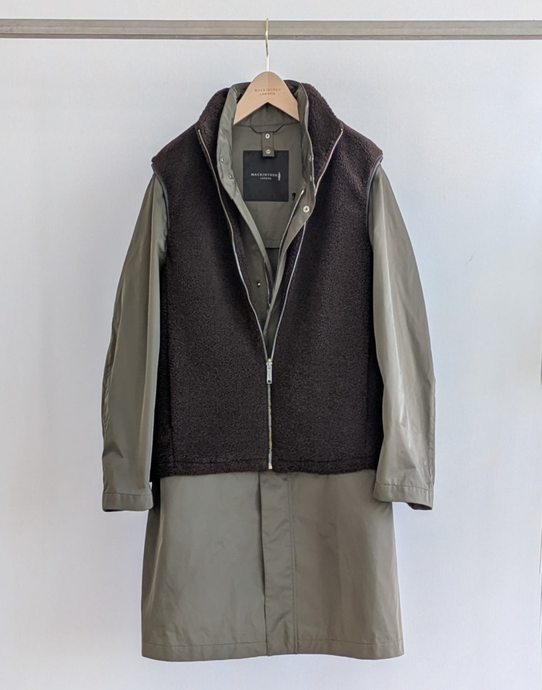 スタンダードなデザインのコート、ベストは単品で着用することで、暖かい秋冬の調温アイテムとして対応が可能。冷え込む日にはベストをコートの内側に重ねて防寒性を高めた着こなしも。さらにコートの上にベストを重ねることで、ワンパターンになりがちな冬のスタイリングの幅を広げることができます。