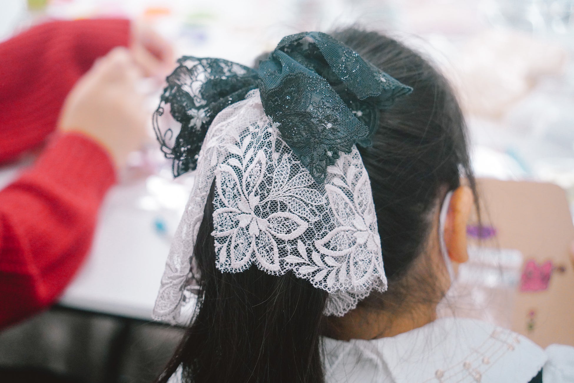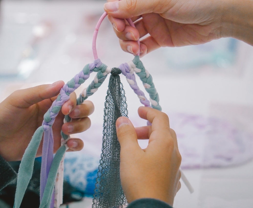当日は、私も一緒に「デザイナー体験」をさせていただきましたが、子どもたちがワコールの社員さんに教えてもらいながら、楽しそうにヘアゴムづくりに取り組む姿が大変印象的でした。