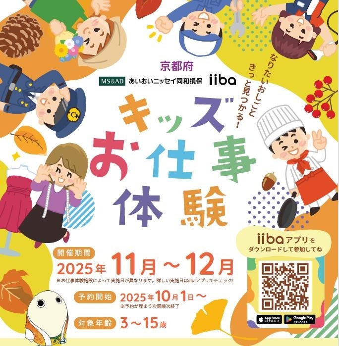 本イベントは、京都府があいおいニッセイ同和損害保険株式会社 及び 株式会社iibaと連携し、京都府内の事業所で子どもたちが仕事体験を行う企画「キッズお仕事体験」の一環として実施されたものです。開催2日目には西脇隆俊京都府知事が来訪し、ワークショップを通じて子どもたちとの交流を深めました。
