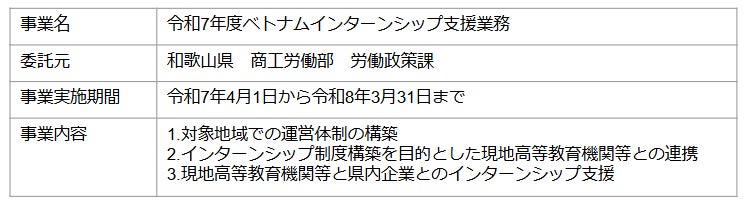 「令和7年度ベトナムインターンシップ支援業務」について