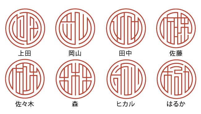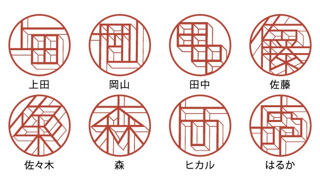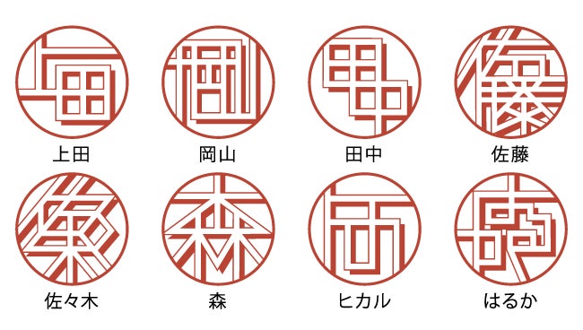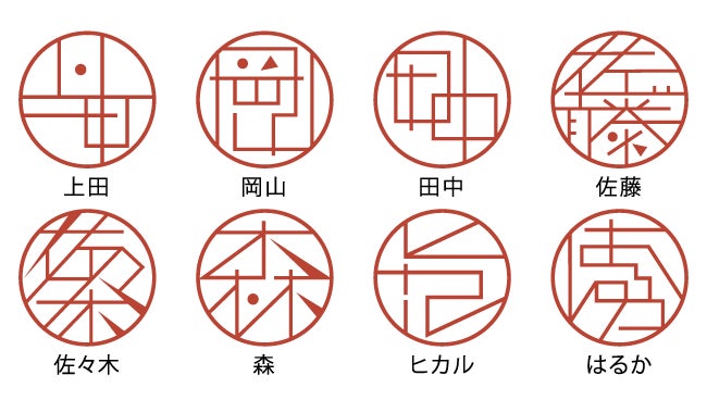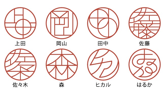 基本的に実印として使うこともできる(※)タイポグラフィーはんこ「TYPO」。まるで自分だけのロゴマークのようなデザインのハンコは、自分の名前ならどんなデザインになるか想像しながら到着を待つ、なんていうことも楽しさのひとつです。