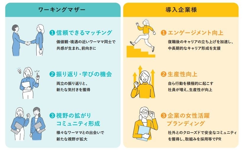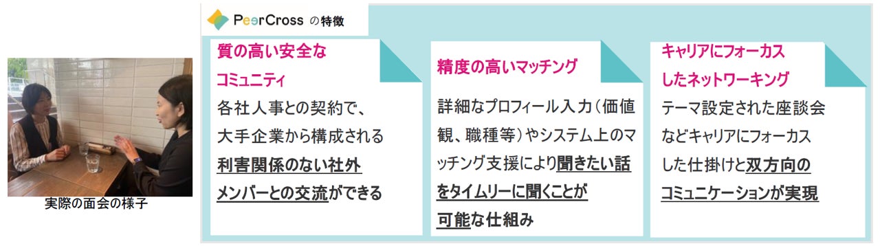 企業向けワーキングマザー支援サービス「PeerCross」のサービスがスタートします~価値観・境遇の近しいユーザーとのタイムリーな出会いでキャリア形成を前向きに~