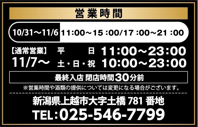 ※10 月 31 日~11 月 6 日は、営業時間が変わります。詳細は右記をご確認ください。