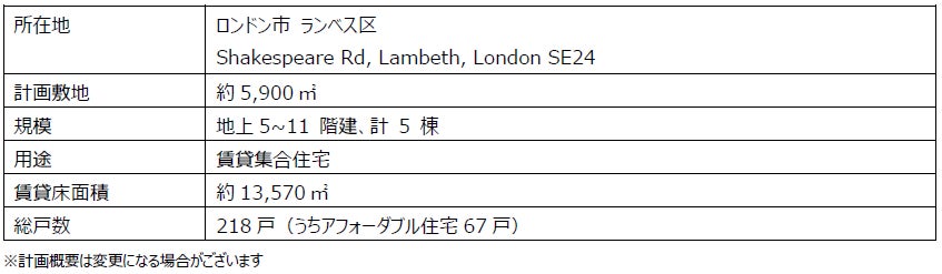 ~ 住宅不足が社会課題となるロンドン市内で、今後継続的に高品質な賃貸住宅を開発 ~