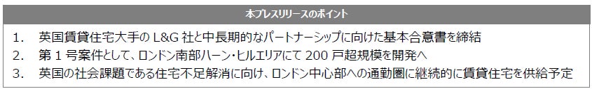 英国大手L&G社と中長期的な契約締結の上、英国での賃貸住宅(BTR)事業に参入