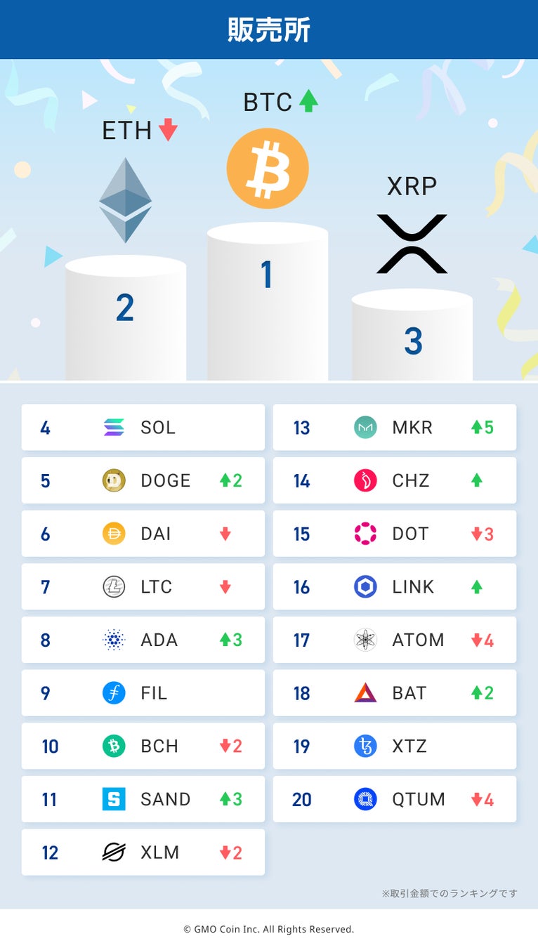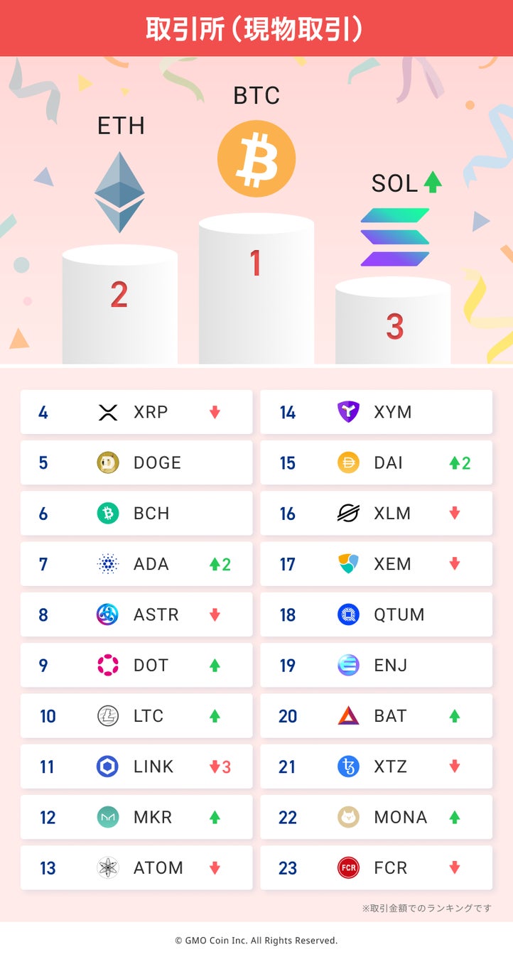 GMOコインの「販売所」および「取引所(現物取引)」における2024年10月の取引ランキングをご紹介します。