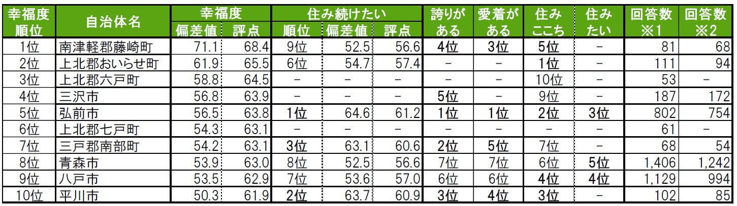 いい部屋ネット「街の幸福度 & 住み続けたい街ランキング2022<青森県版>」(街の住みここちランキング特別集計)発表