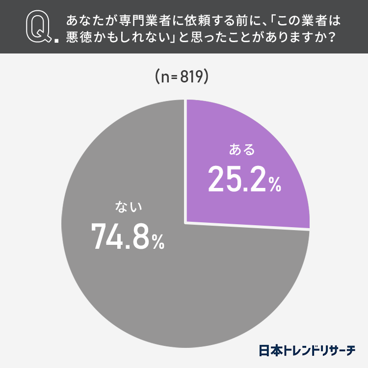 25.2%が、専門業者に依頼する前に「この業者は悪徳かもしれない」と思ったことがあると回答しました。