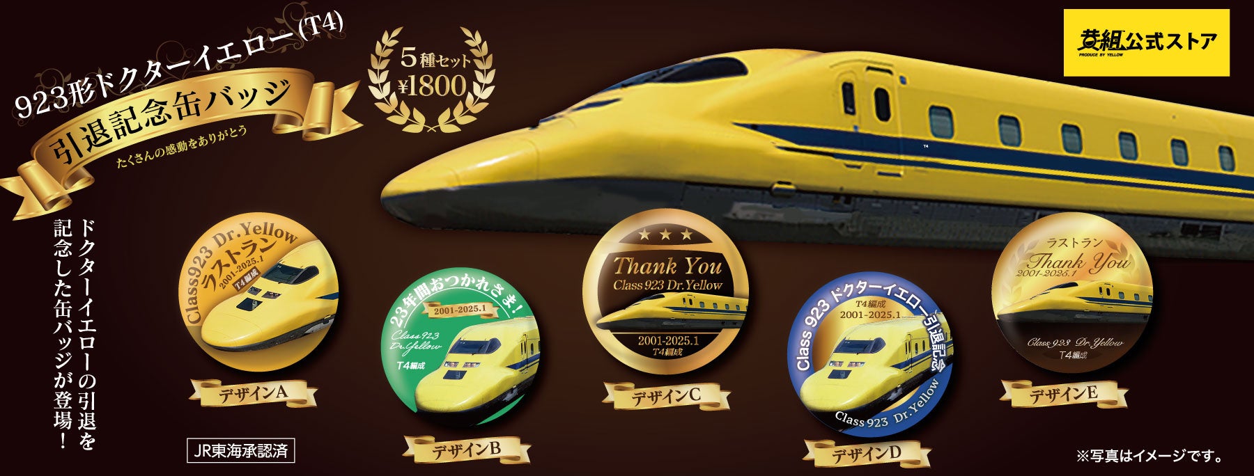 「923形ドクターイエロー(T4)引退記念缶バッジ」オンライン販売決定