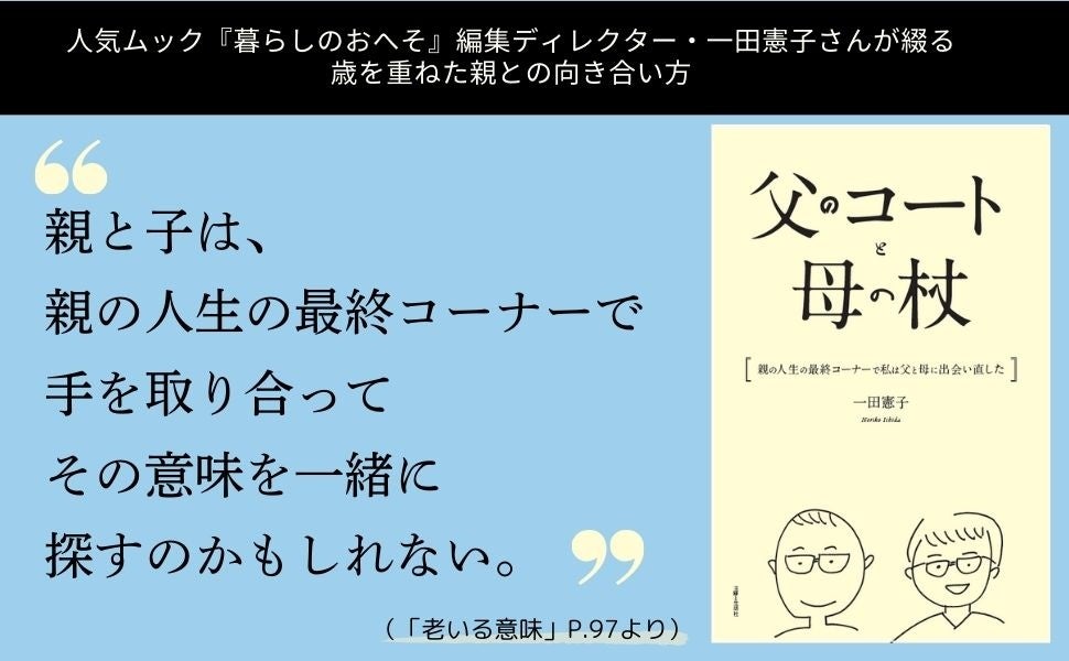 ずっと元気だと思っていた両親が、80代、90代になったとき──。人気ライフスタイル誌『暮らしのおへそ』ディレクター・一田憲子さんが、老親との向き合い方を綴る初エッセイ『父のコートと母の杖』11/1発売
