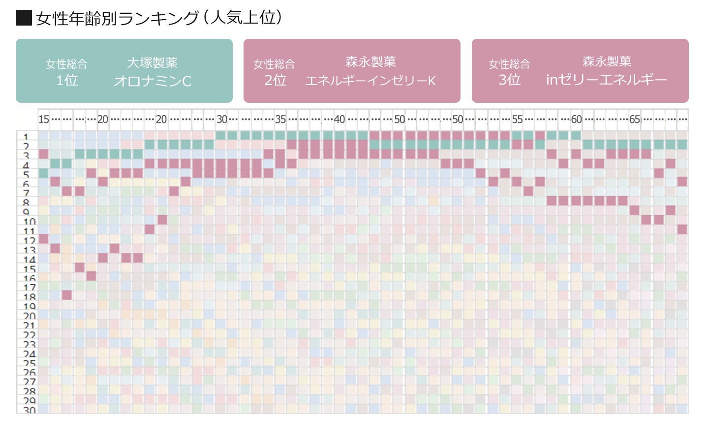 - 【女性総合・購買ランキングTOP3】「オロナミンC」「エネルギーインゼリーK」「inゼリー エネルギー」