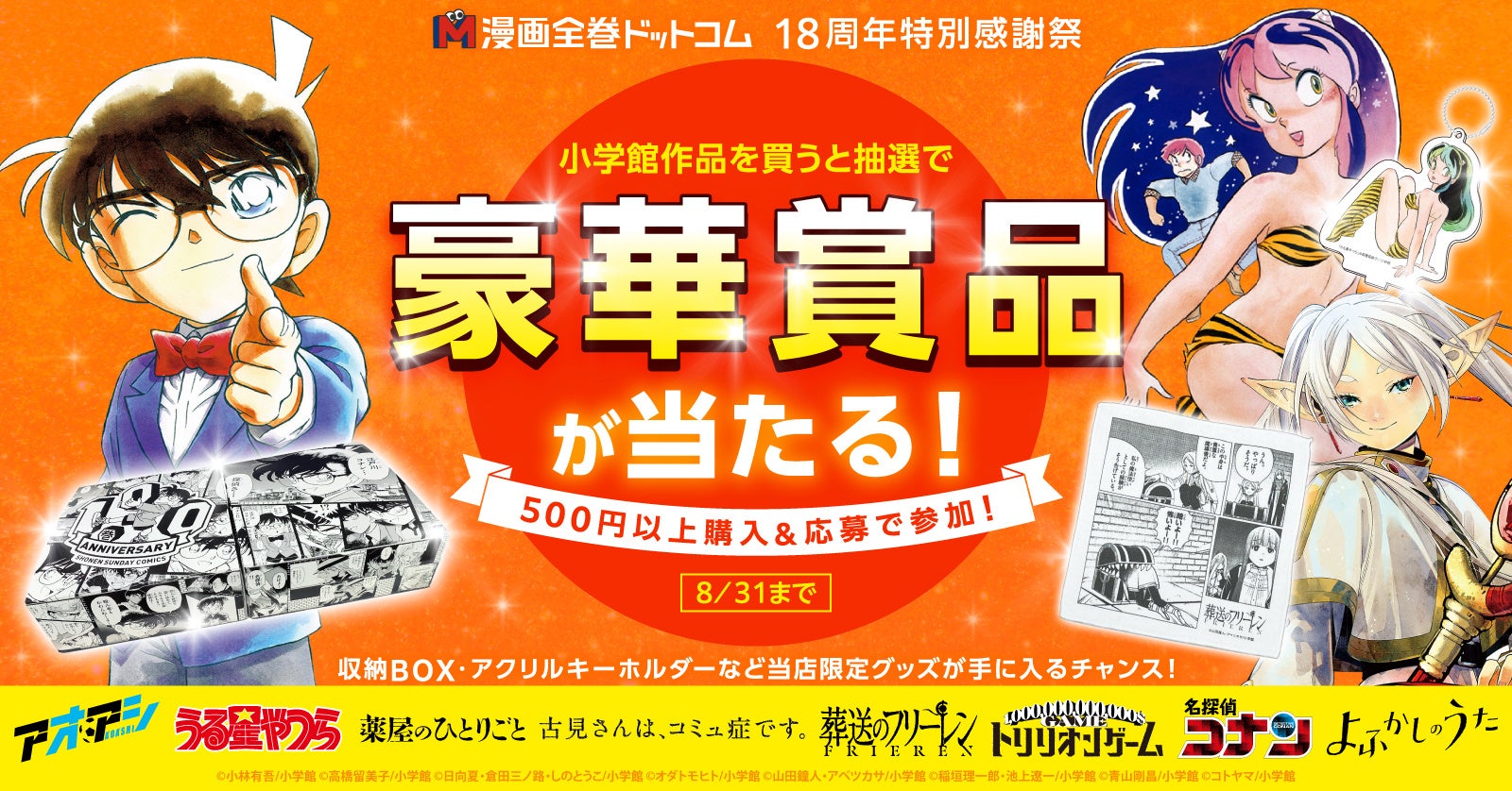 漫画全巻ドットコム 18周年特別感謝祭★『名探偵コナン』100巻収納BOXや『葬送のフリーレン』ハンドタオルなど豪華賞品が抽選で当たる!
